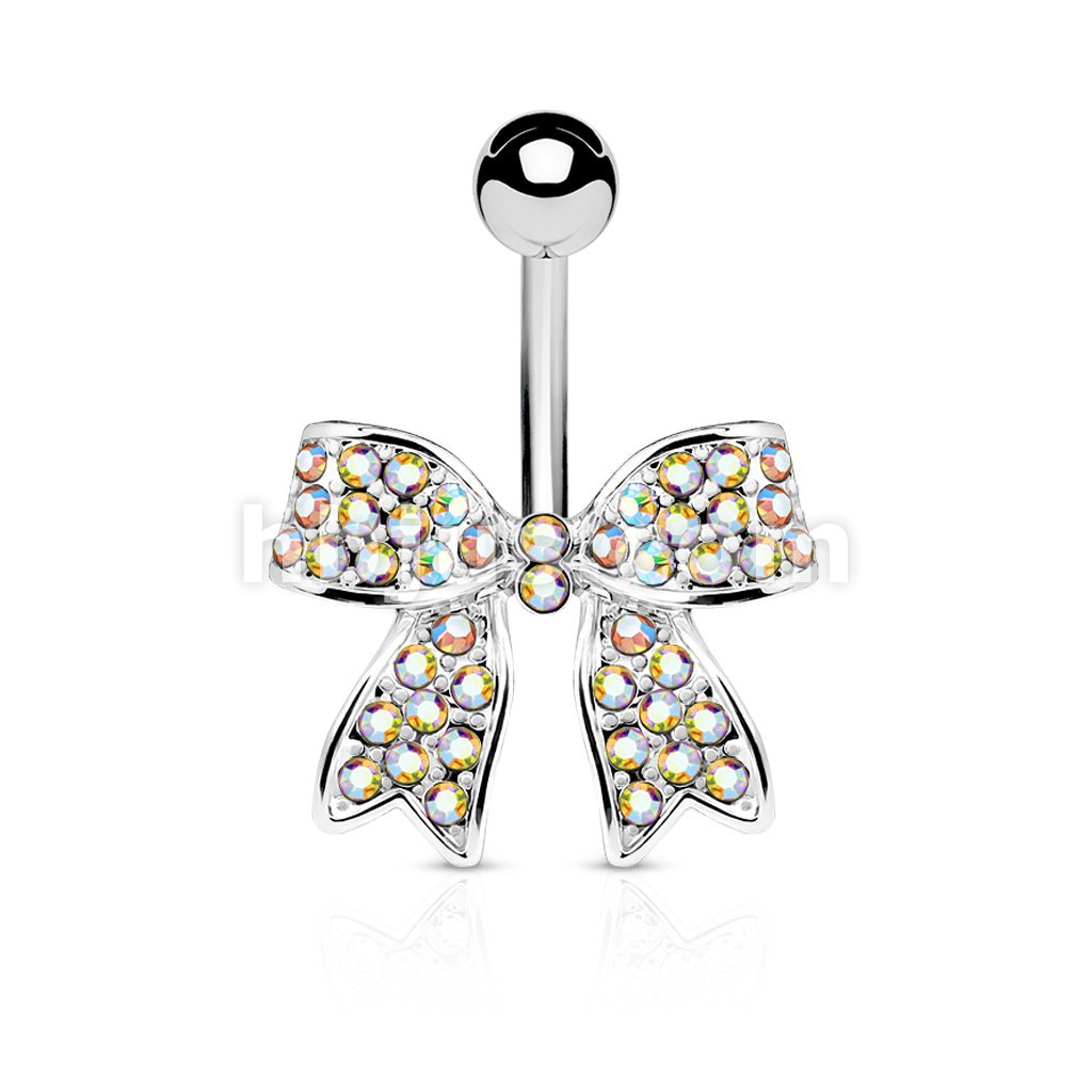 316L Surgical Steel Crystal Paved Ribbon Belly Button Ring