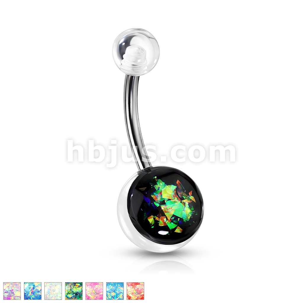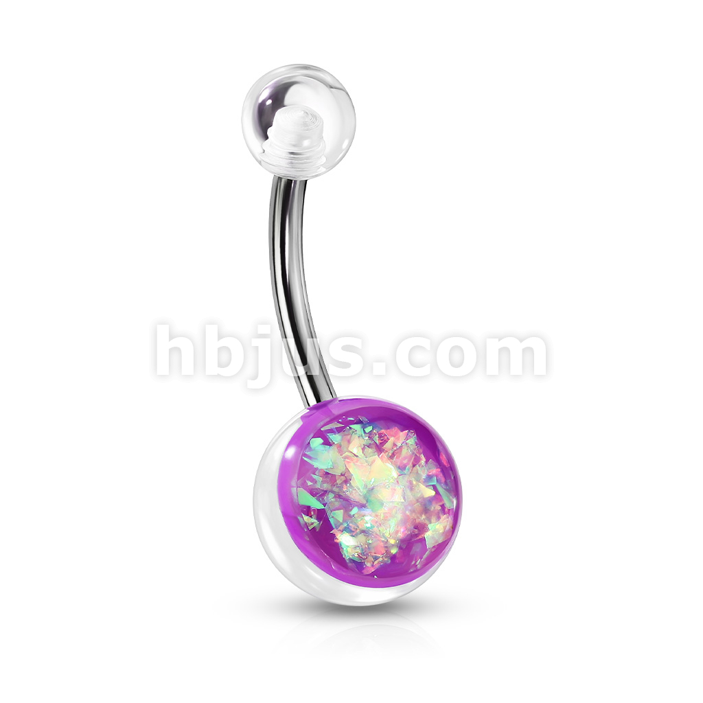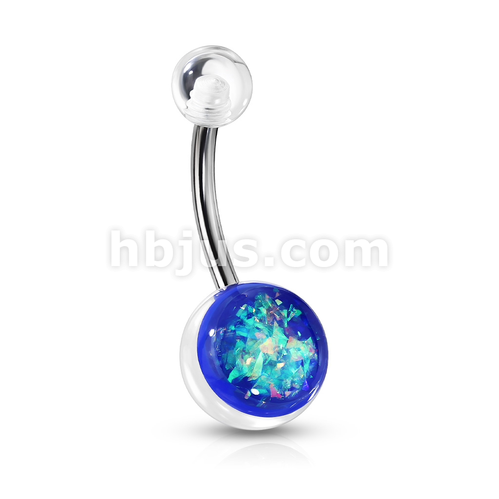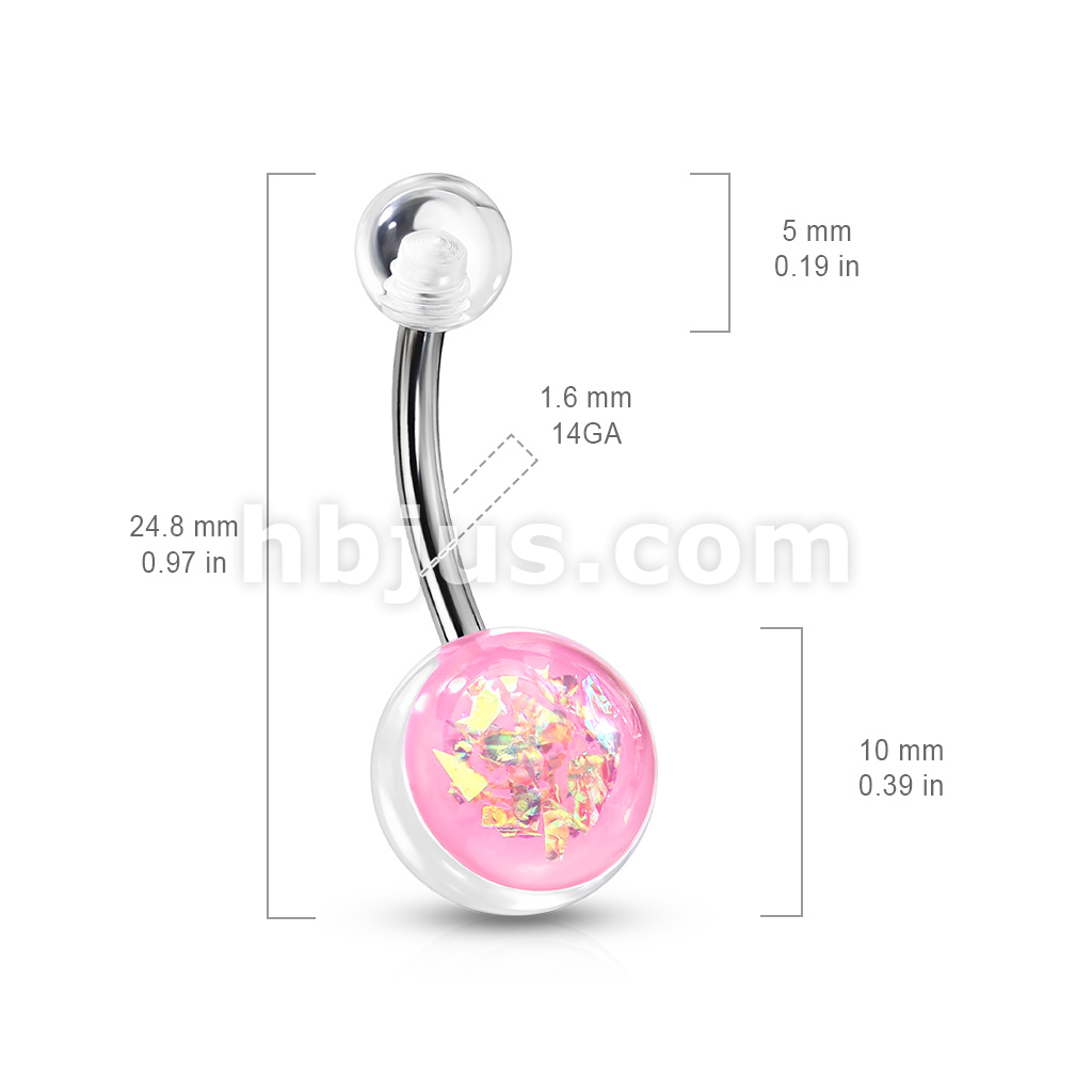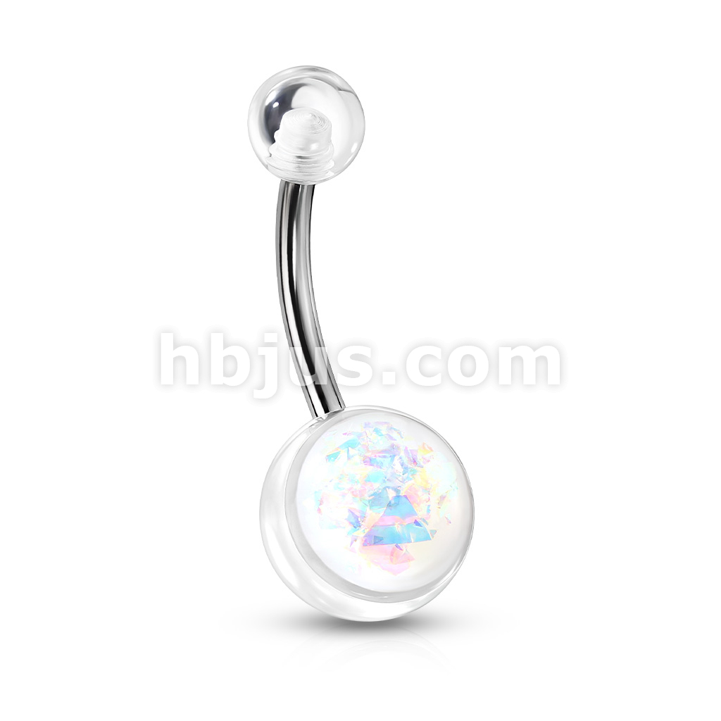 Opal Glitter Set On Clear Acrylic Ball 316L surgical Steel Belly Button Navel Rings