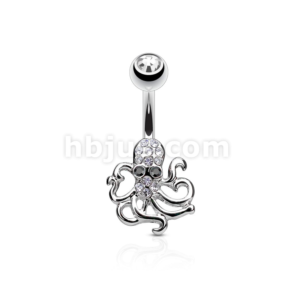 316L Surgical Steel Crystal Paved Octopus Belly Button Ring