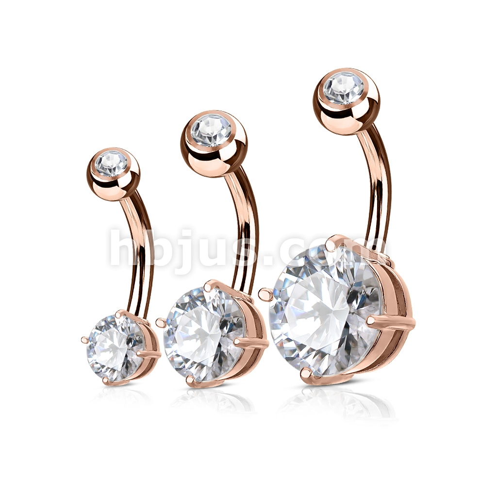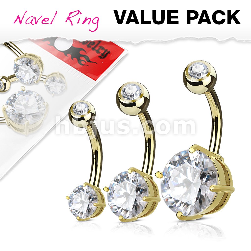 3 Piece Value Pack Mixed Size Round CZ Prong Set 316L Surgical Steel Belly Button Navel Ring Pack