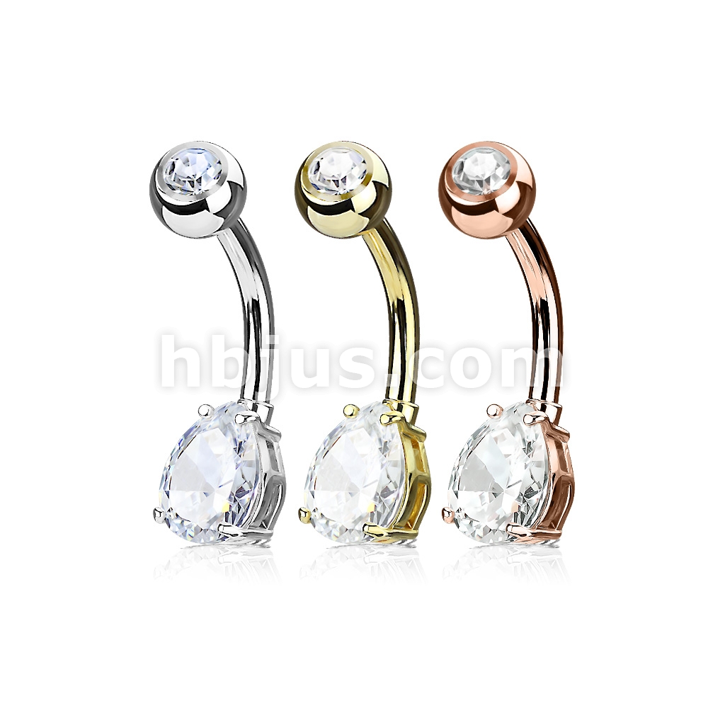 3 Piece Value Pack Tear Drop CZ Prong Set 316L Surgical Steel Belly Button Navel Ring Pack