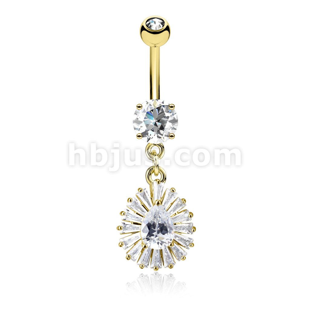 316L Surgical Steel Pear CZ Center and Princess Cut CZ Around Dangle CZ Prong Set Belly Button Ring
