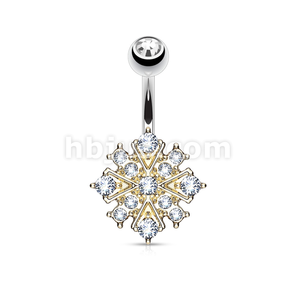 316L Surgical Steel Gem Paved Starburst Belly Button Ring