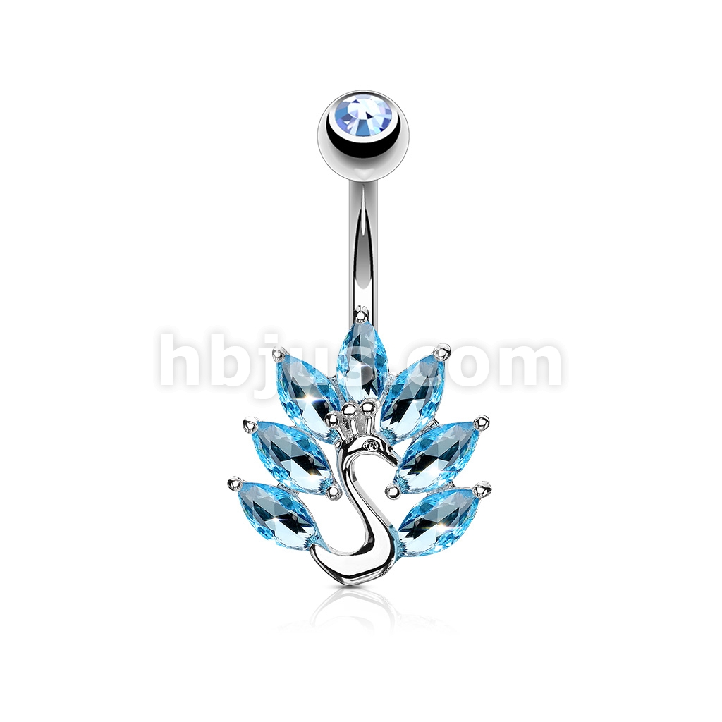 316L Surgical Steel Marquise CZ Peacock Belly Button Ring