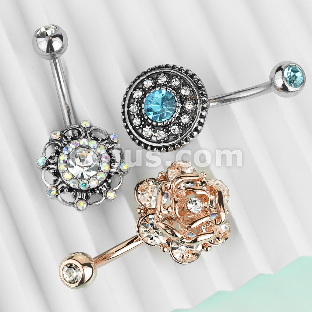 3 Pcs Pre Loaded Assorted 316L Surgical Steel Belly Navel Ring Gem Box Package