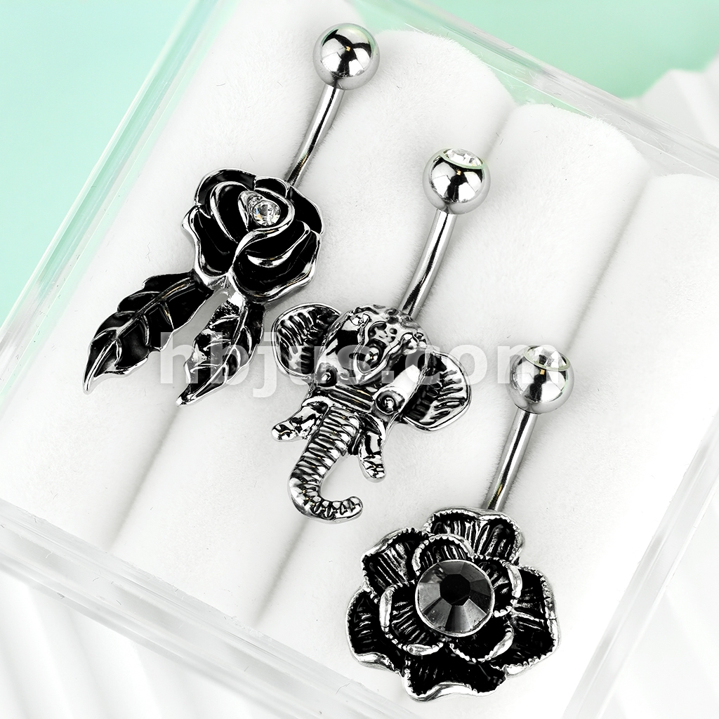 316L Surgical Steel 3 Pcs Pre Loaded Assorted Gem Box Package Belly Button Ring