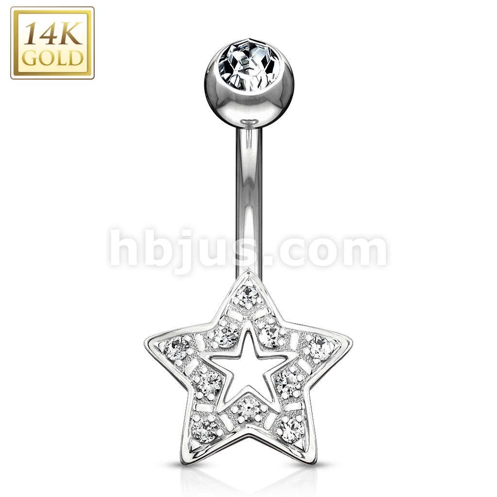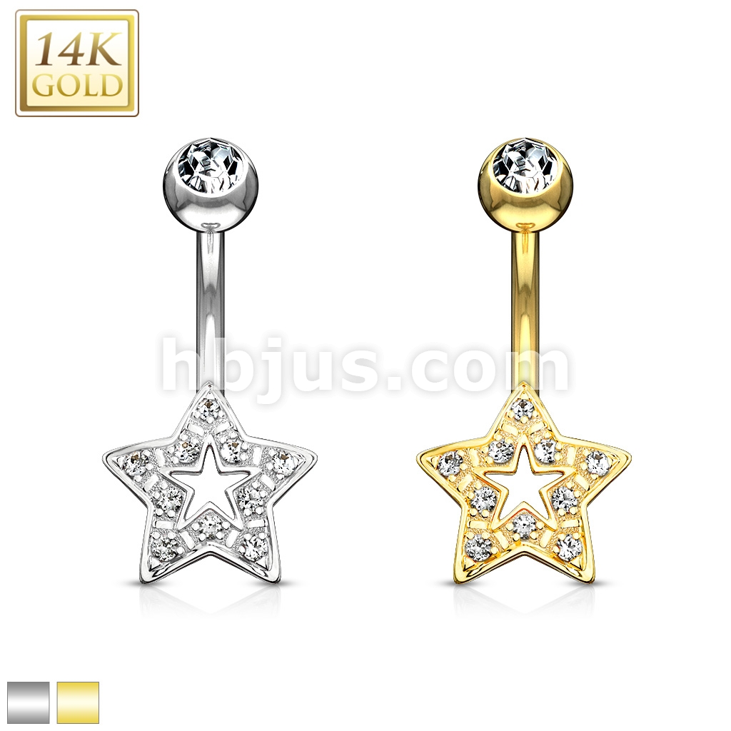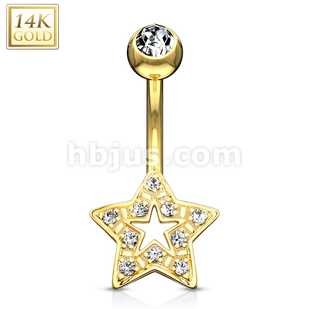 Star Charm Clear CZ 14 Karat Solid Gold Navel Ring