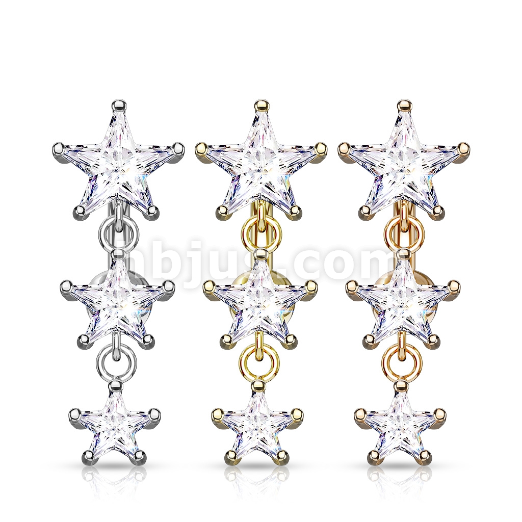 Dozen Pack Three Star CZ Vertical Drop 316L Surgical Steel Top Drop Belly Button Navel Rings