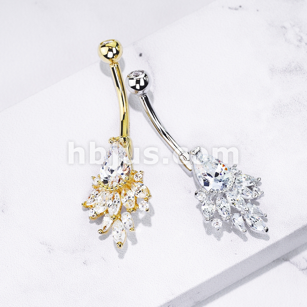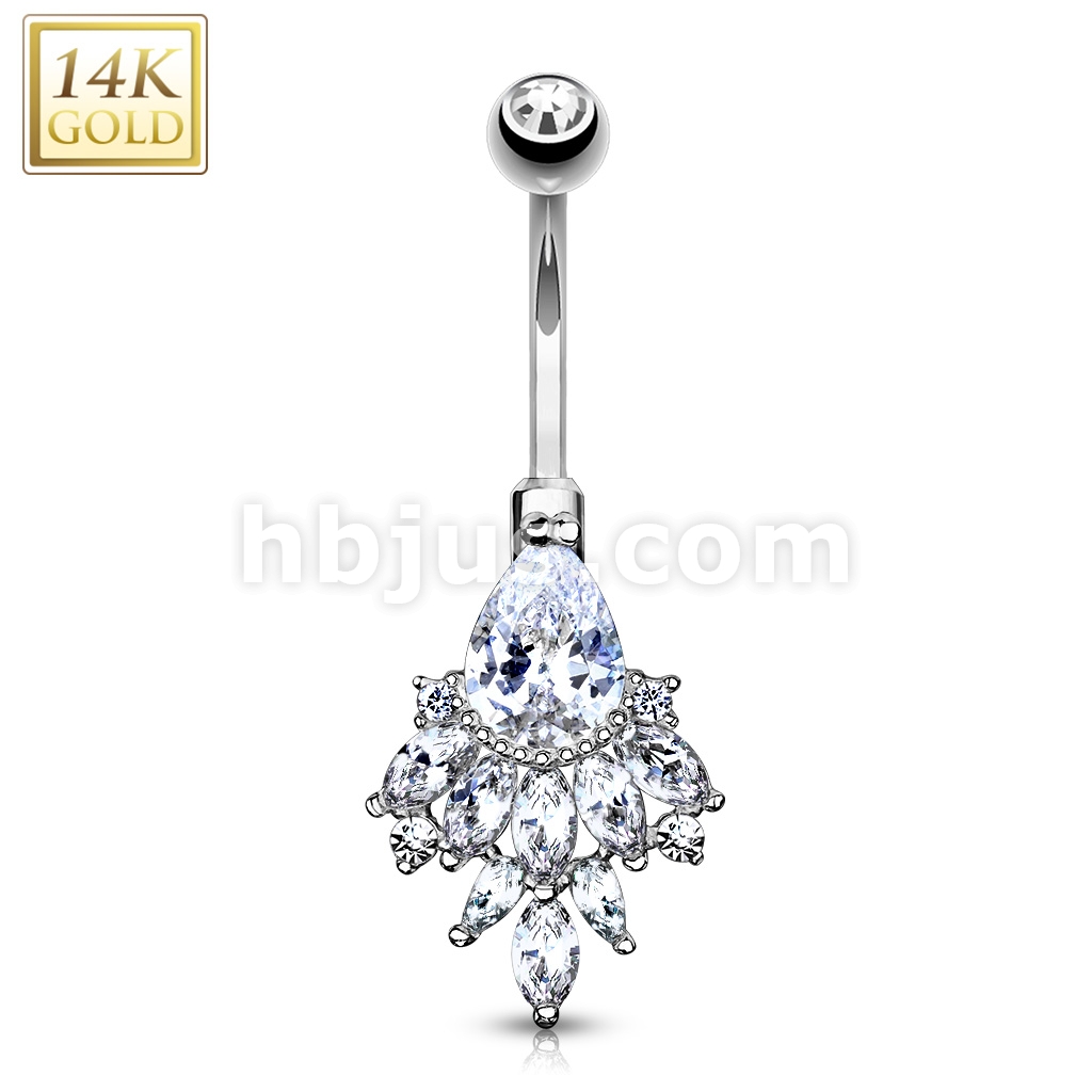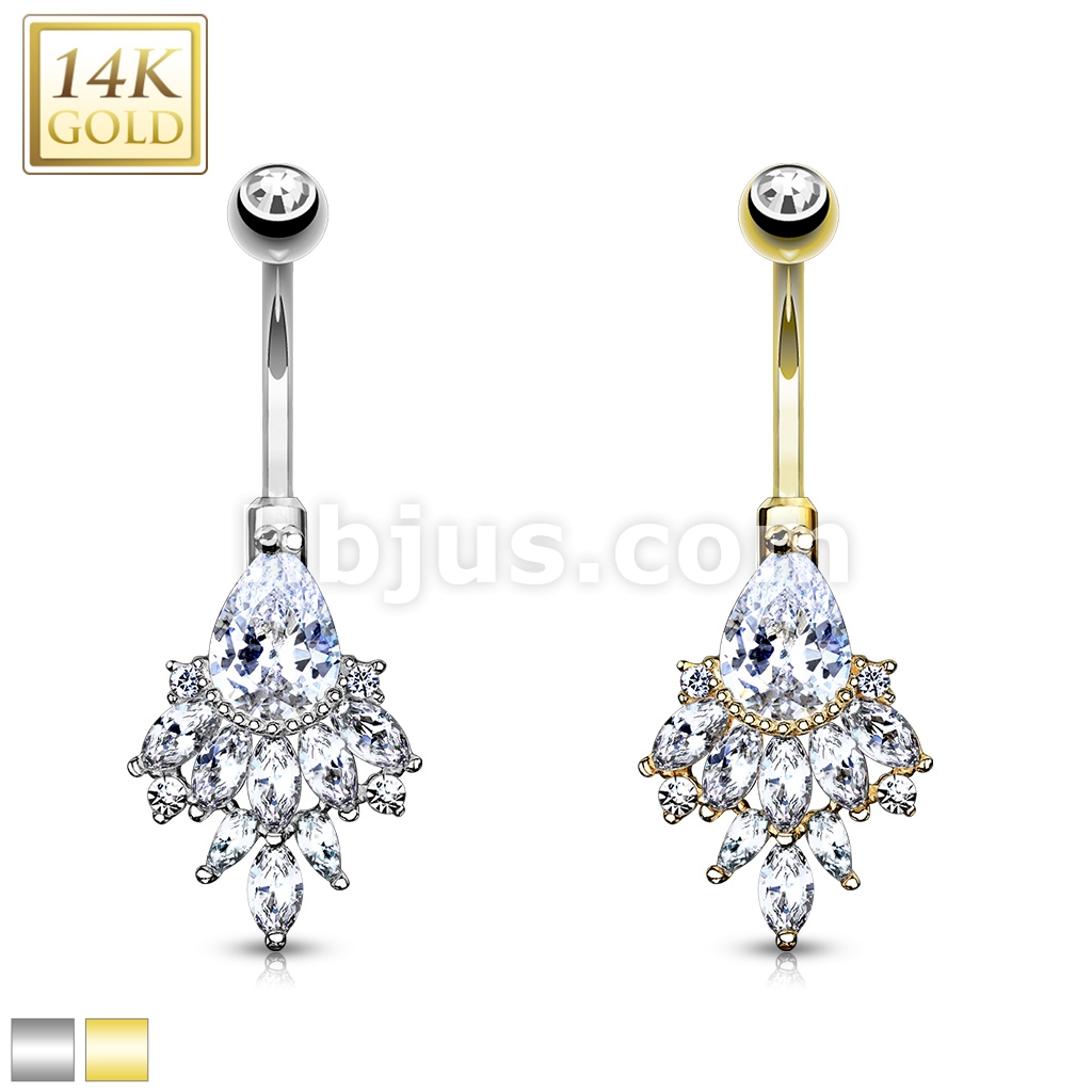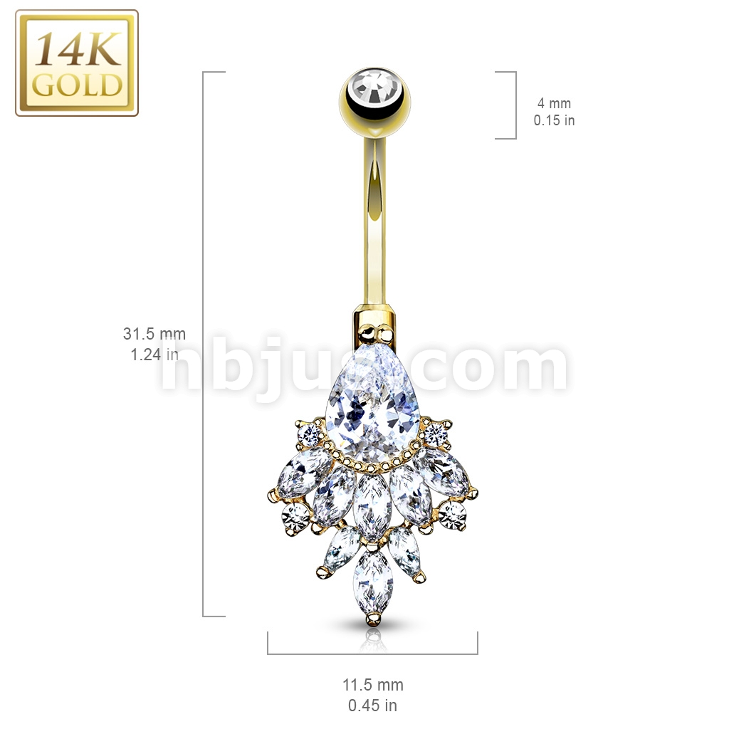 Pear CZ with Cascading Oval CZ Cluster 14 Karat Solid Gold Navel Ring