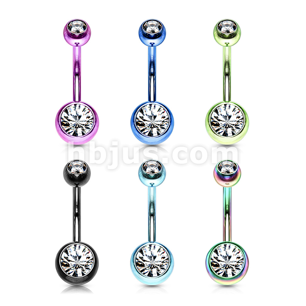 120 Pcs Titanium IP Over 316L Stainless Steel with 2-Gems Navel Ring Pack ( 20pcs x 6 colors )