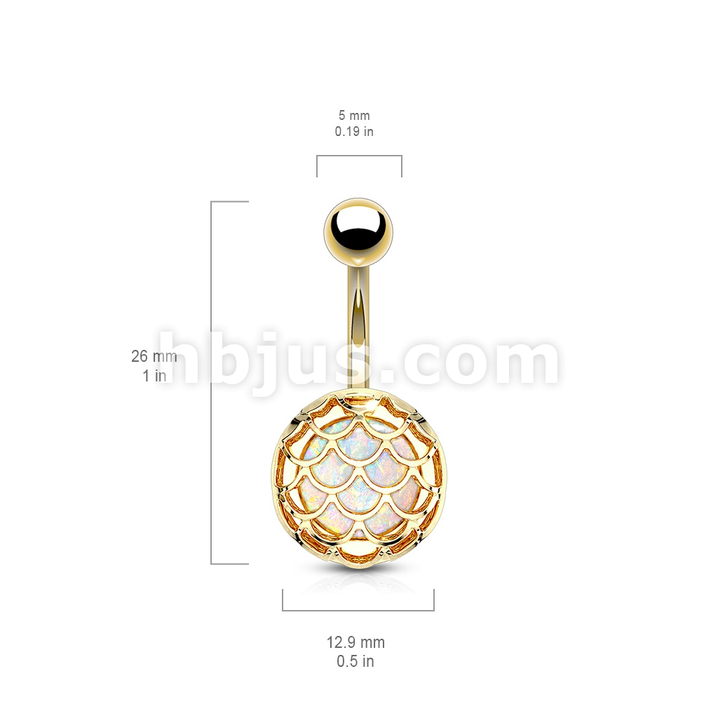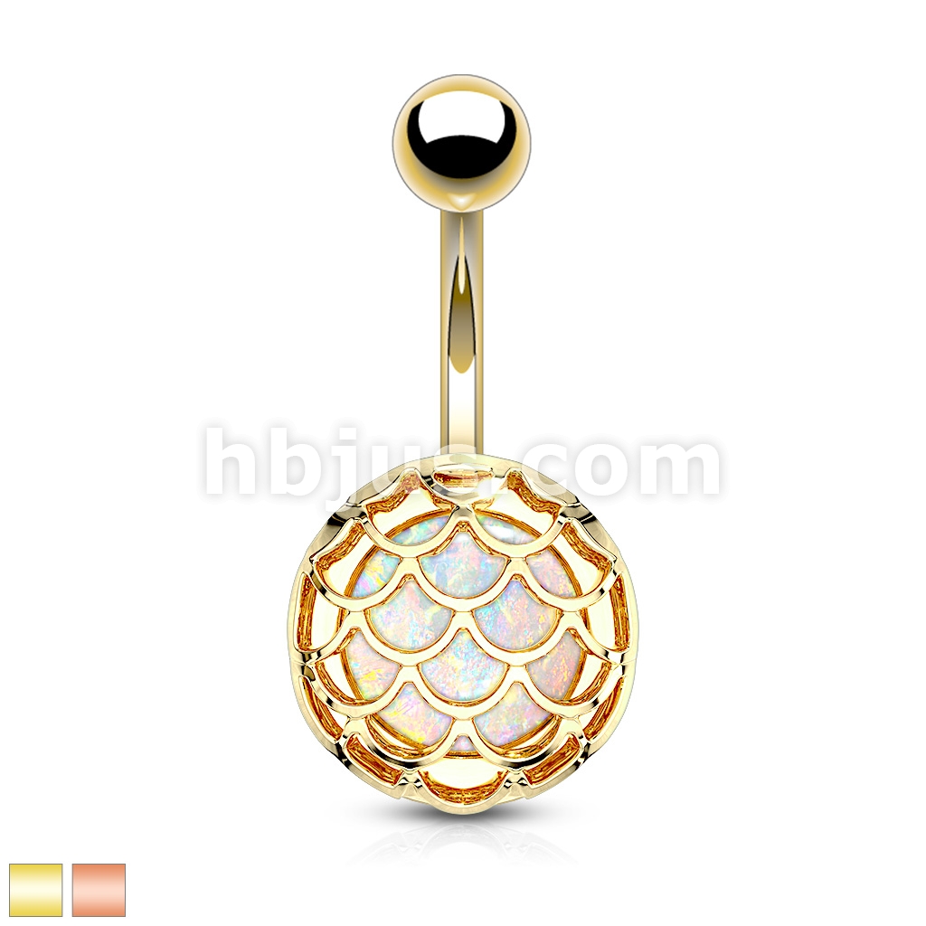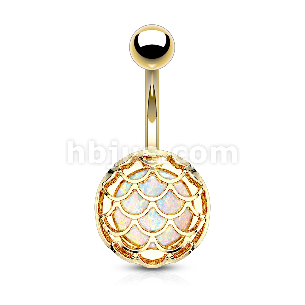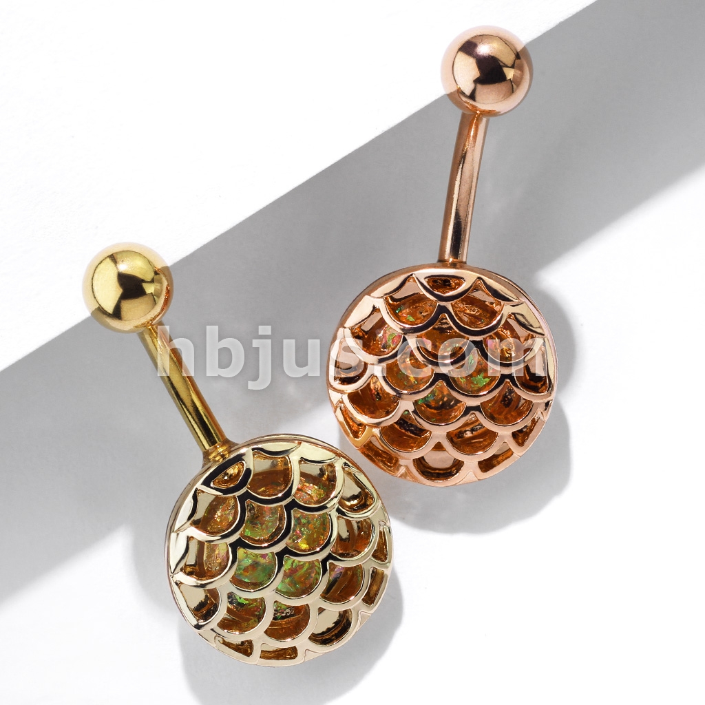 Opal Glitter Incased Casted Fish Scale PVD Over 316L Surgical Steel Belly Button Navel Rings