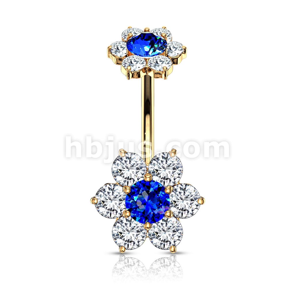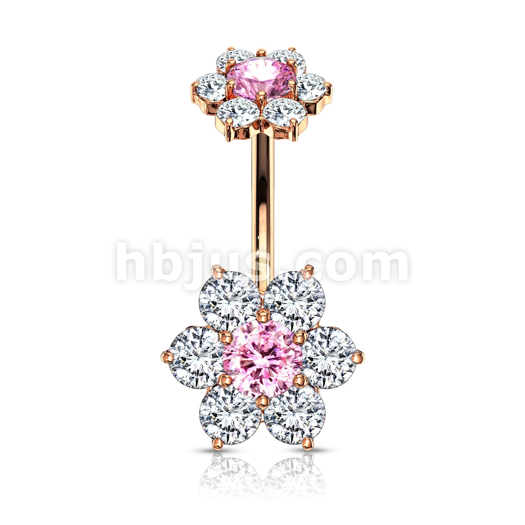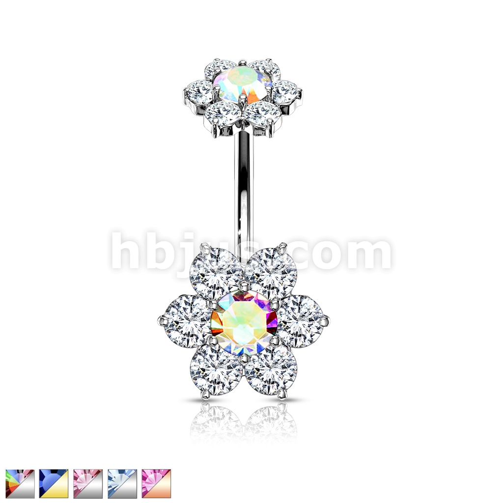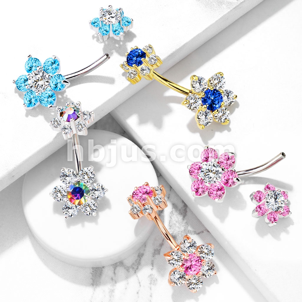 7 CZ Flower with Internally Threaded CZ Flower Top 316L Surgical Steel Belly Button Navel Rings