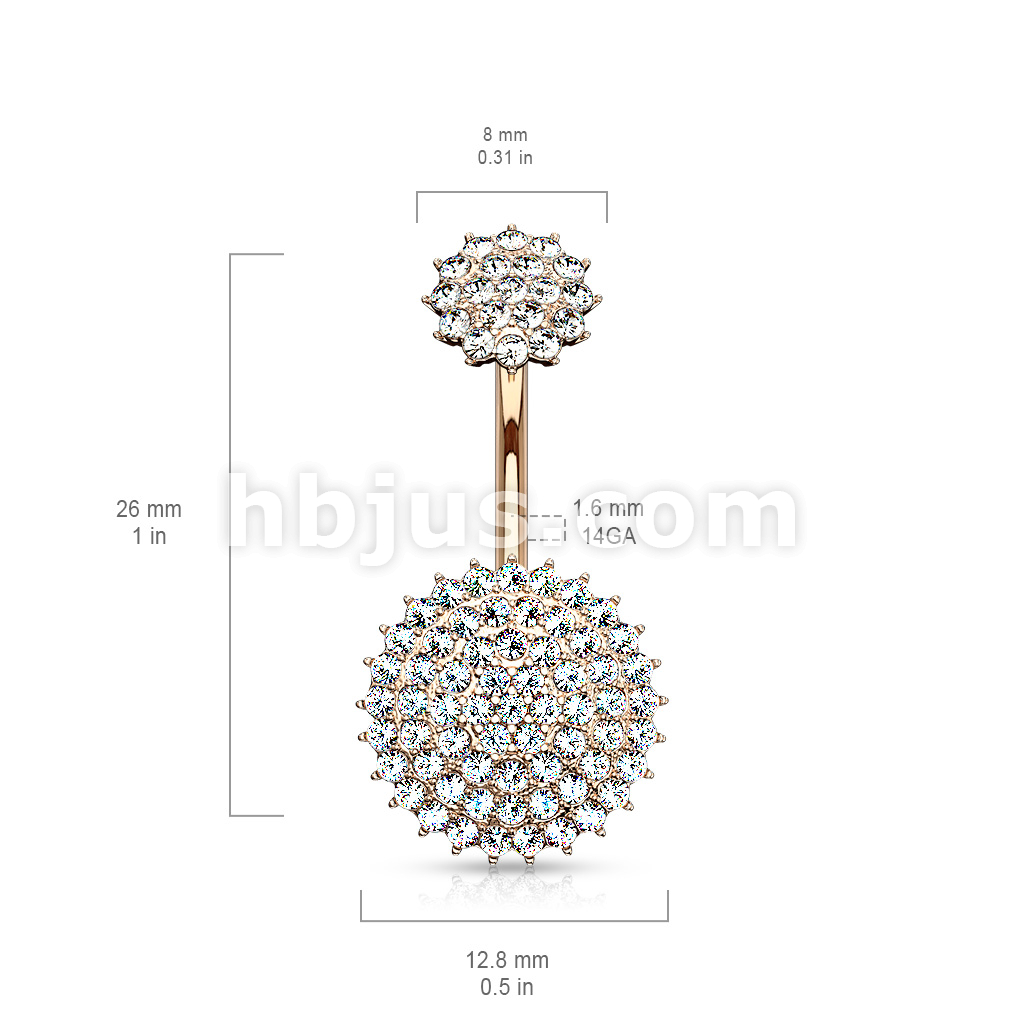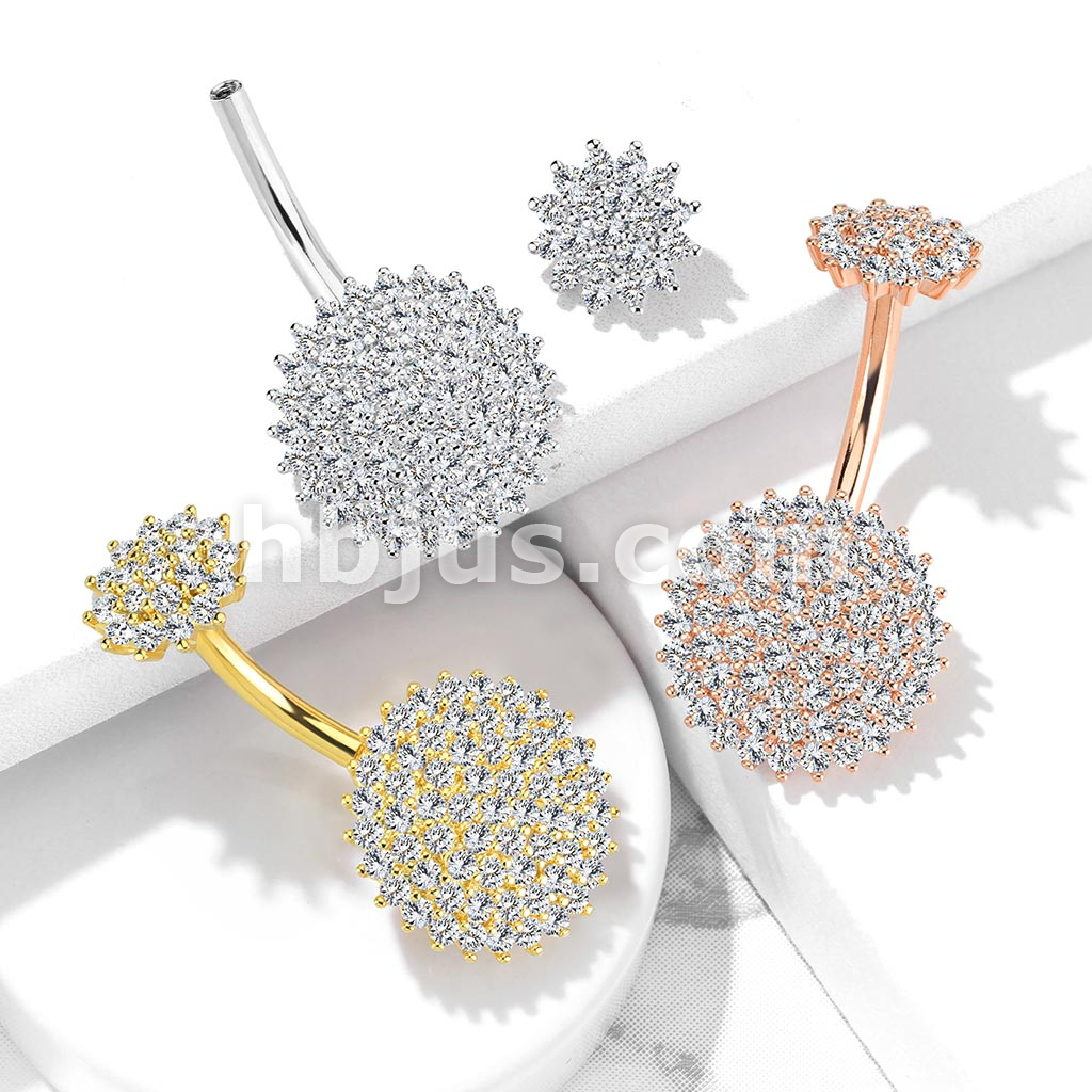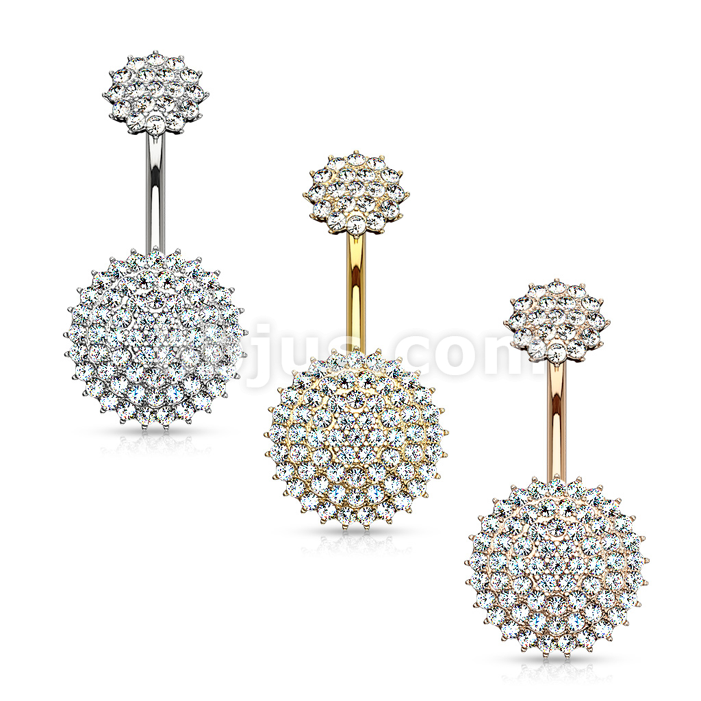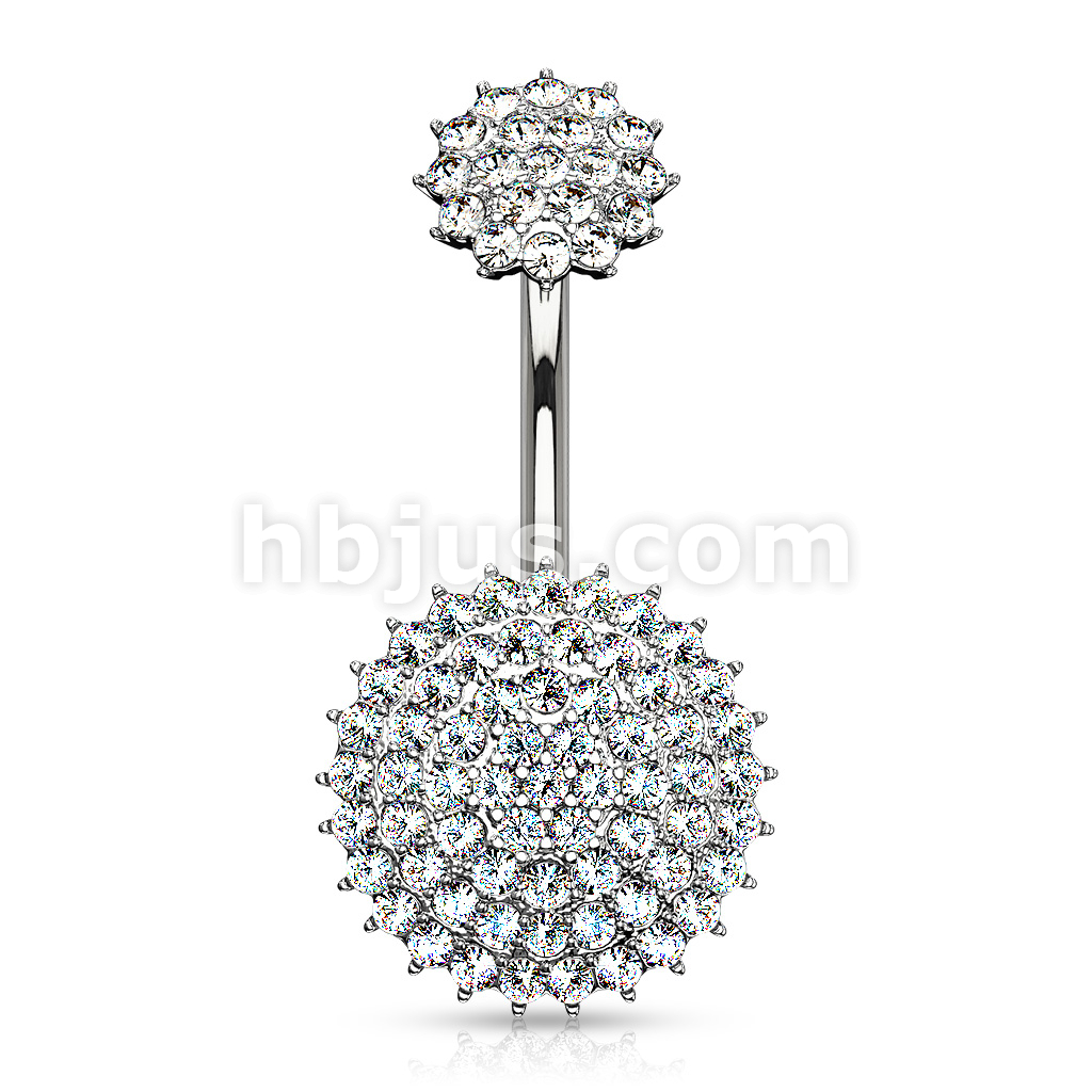 Internally Threaded Top CZ Paved Round Shields 316L Surgical Steel Belly Button Rings