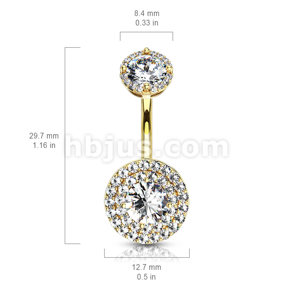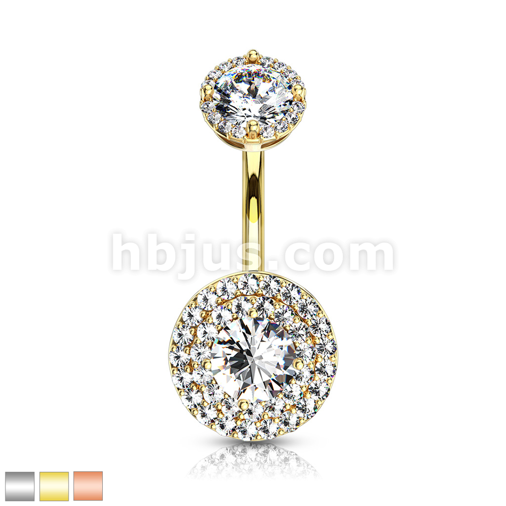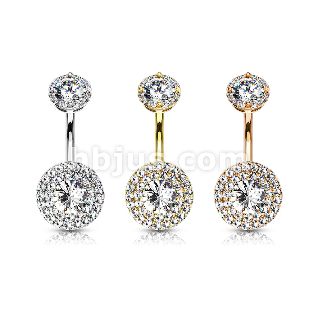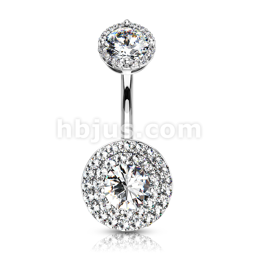 316L Surgical Steel Double Tier Paved CZ Around Large CZ With Internally Threaded Matching Top Belly Button Ring