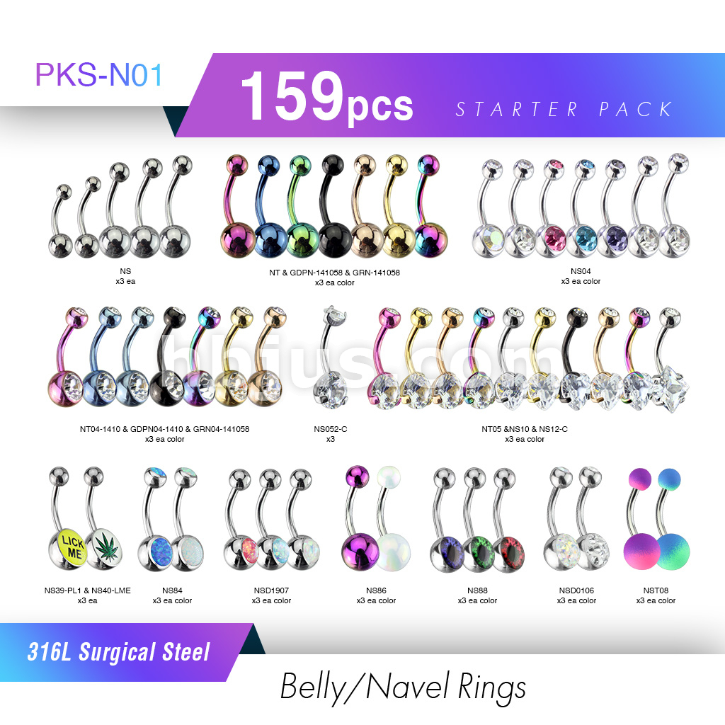 Starter Pack 159pcs 316L Surgical Steel Belly/Navel Rings Pre Assorted Best Sellers
