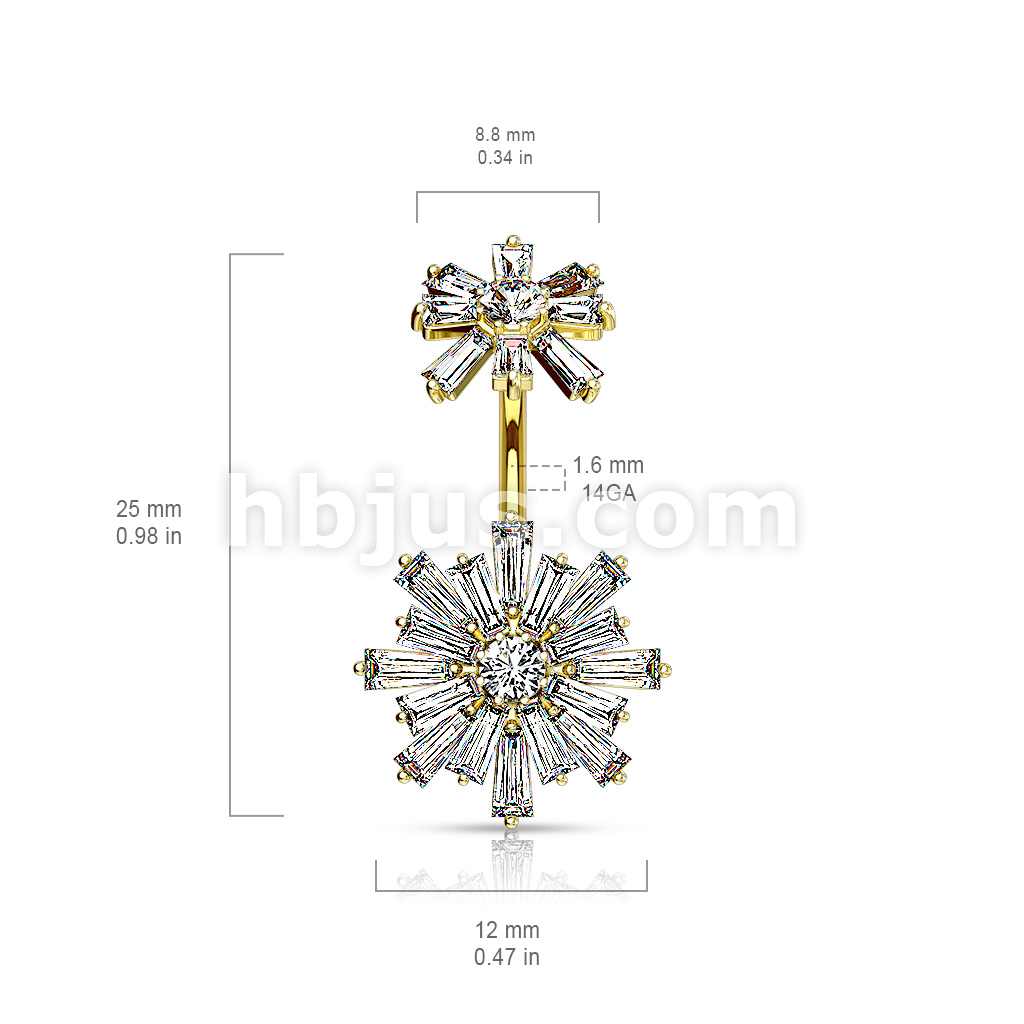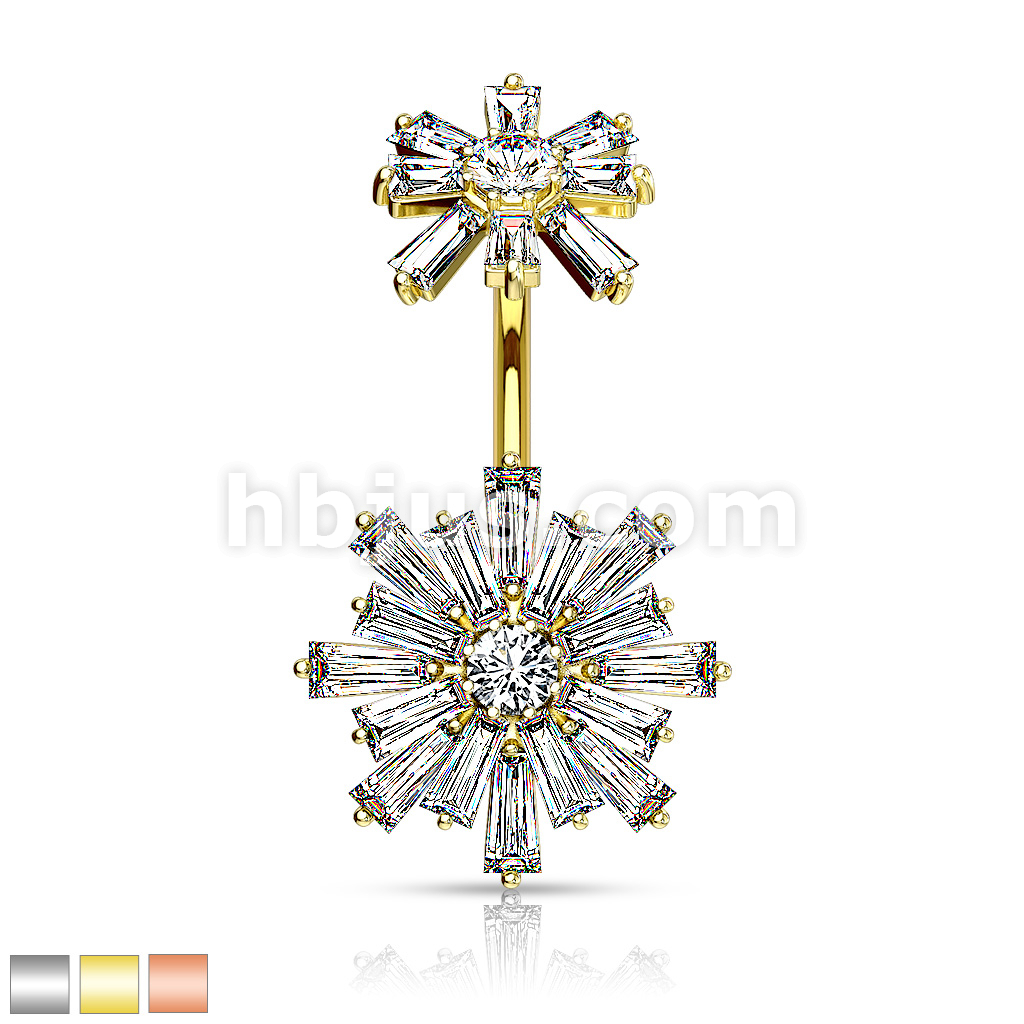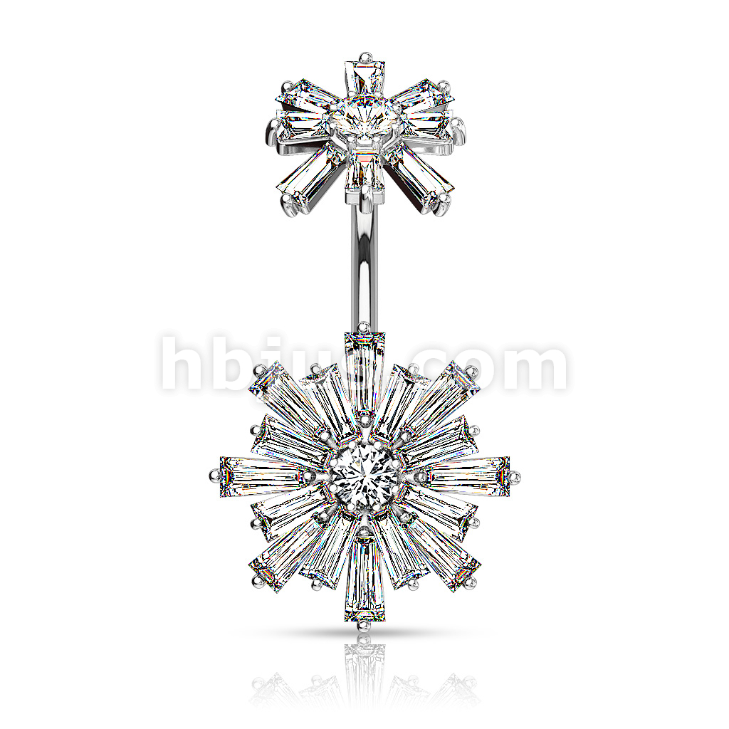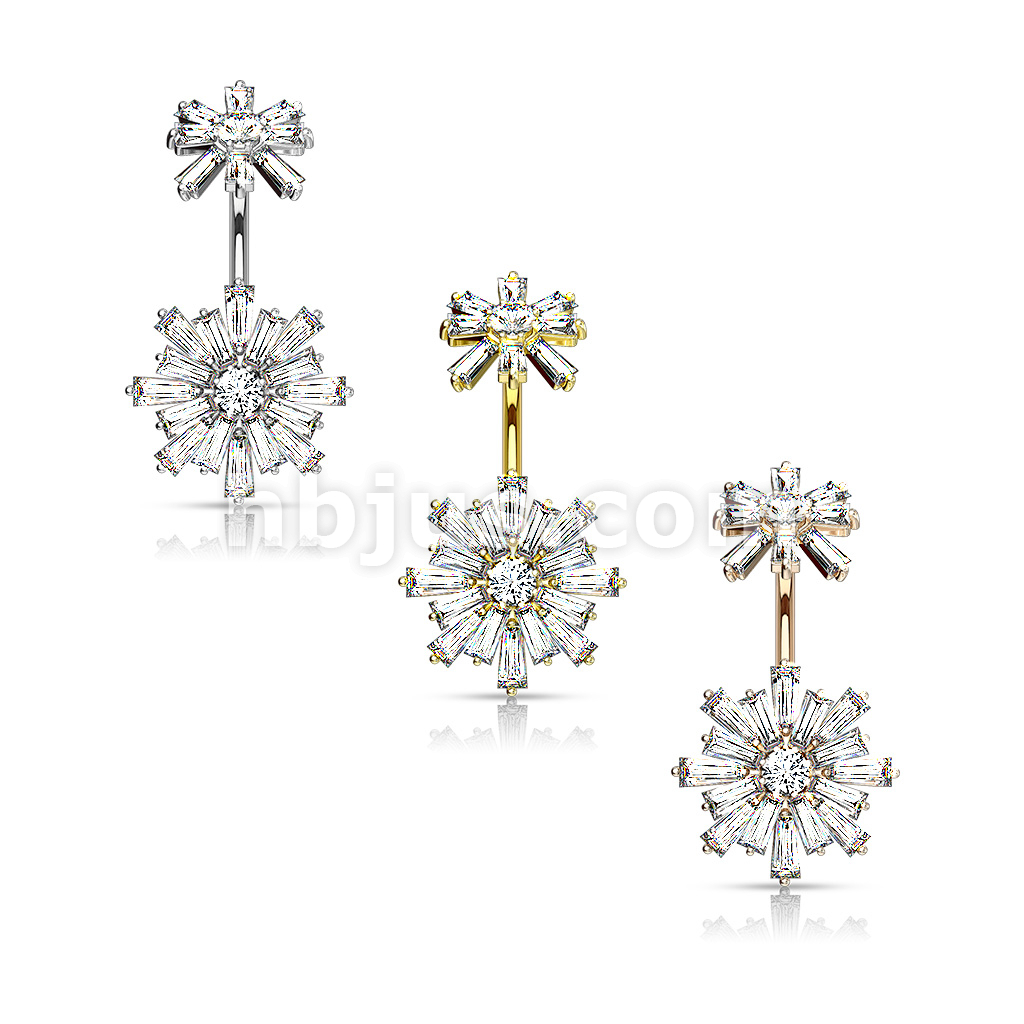Double Tiered Baguette CZ Flower with Internally Threaded CZ Flower Top 316L Surgical Steel Belly Button Navel Rings