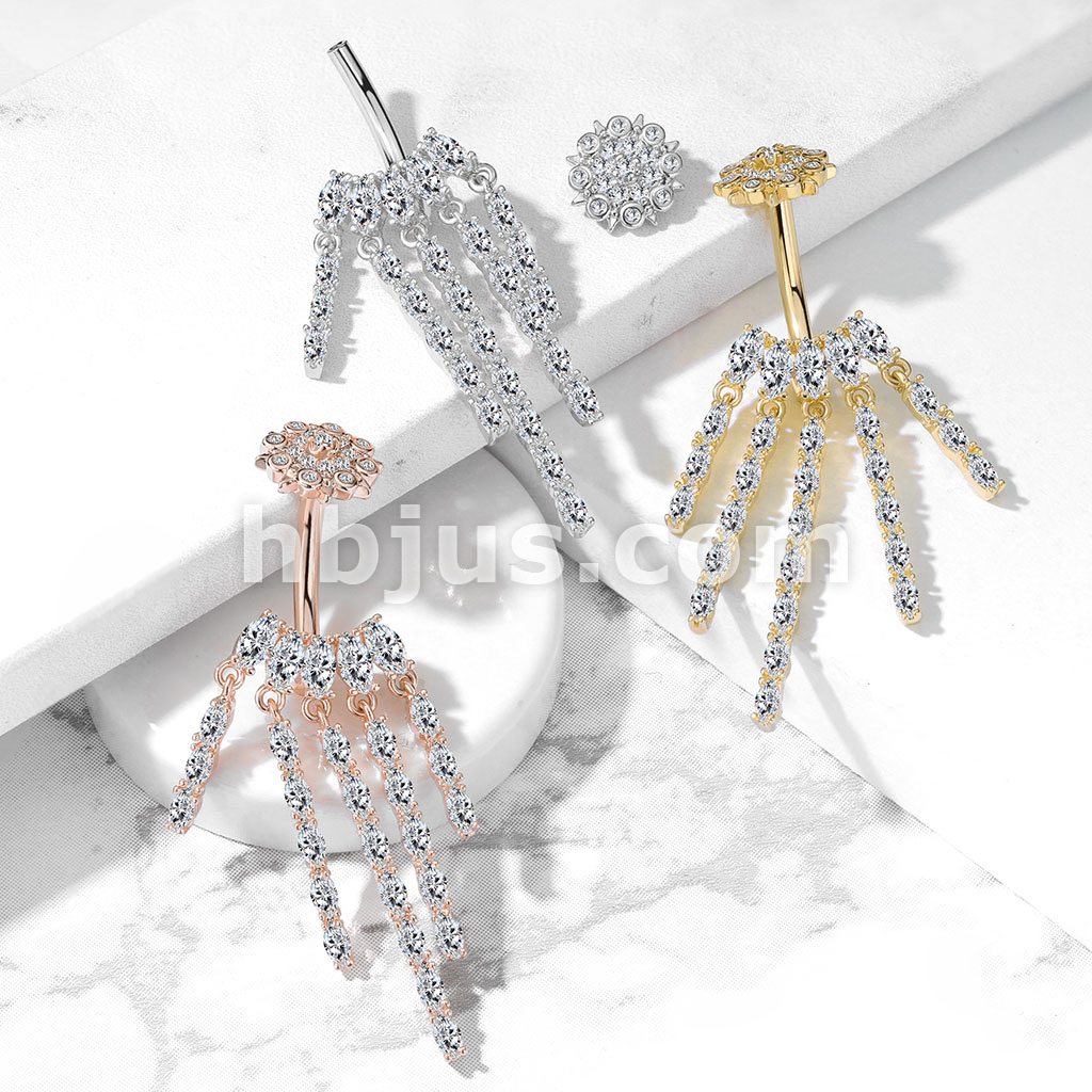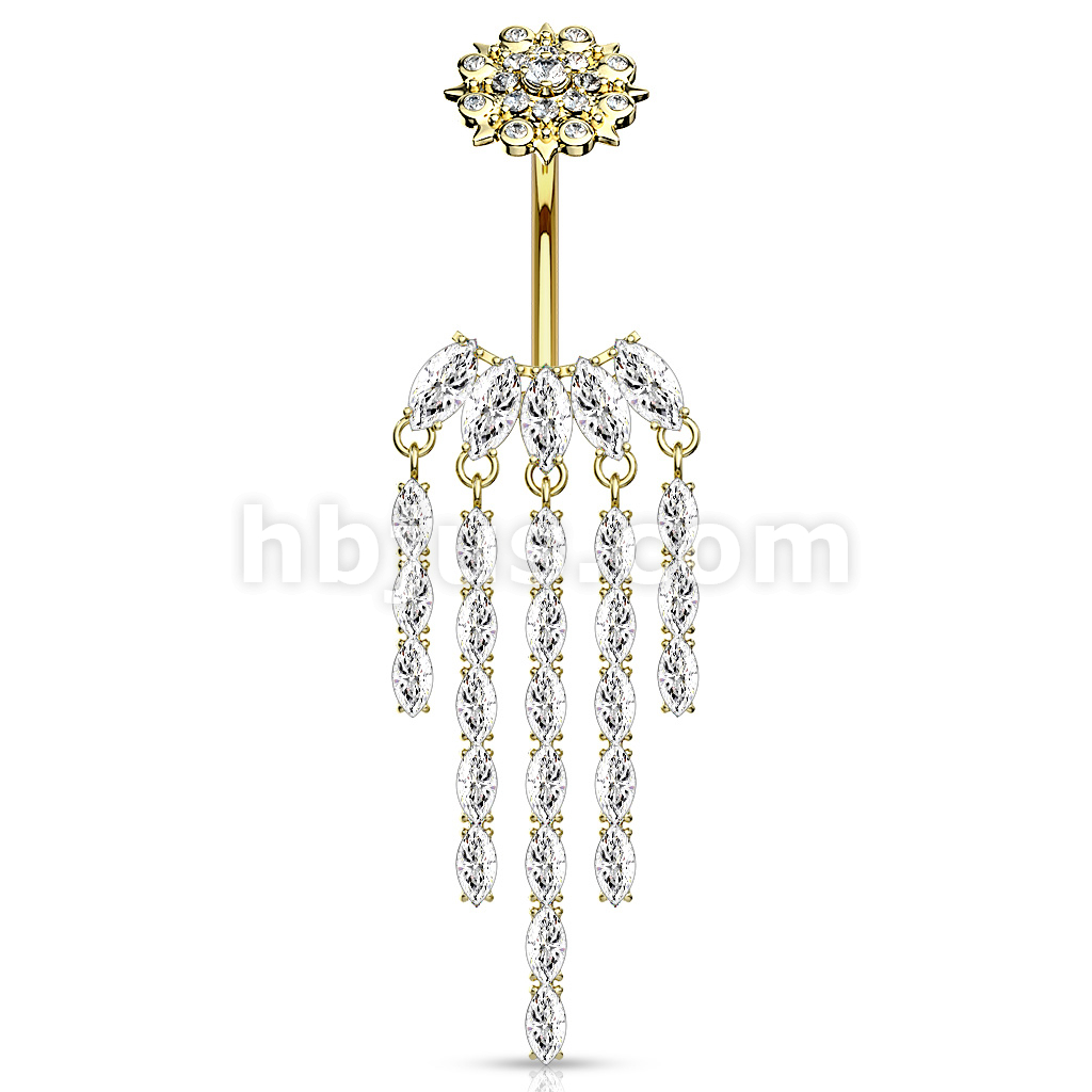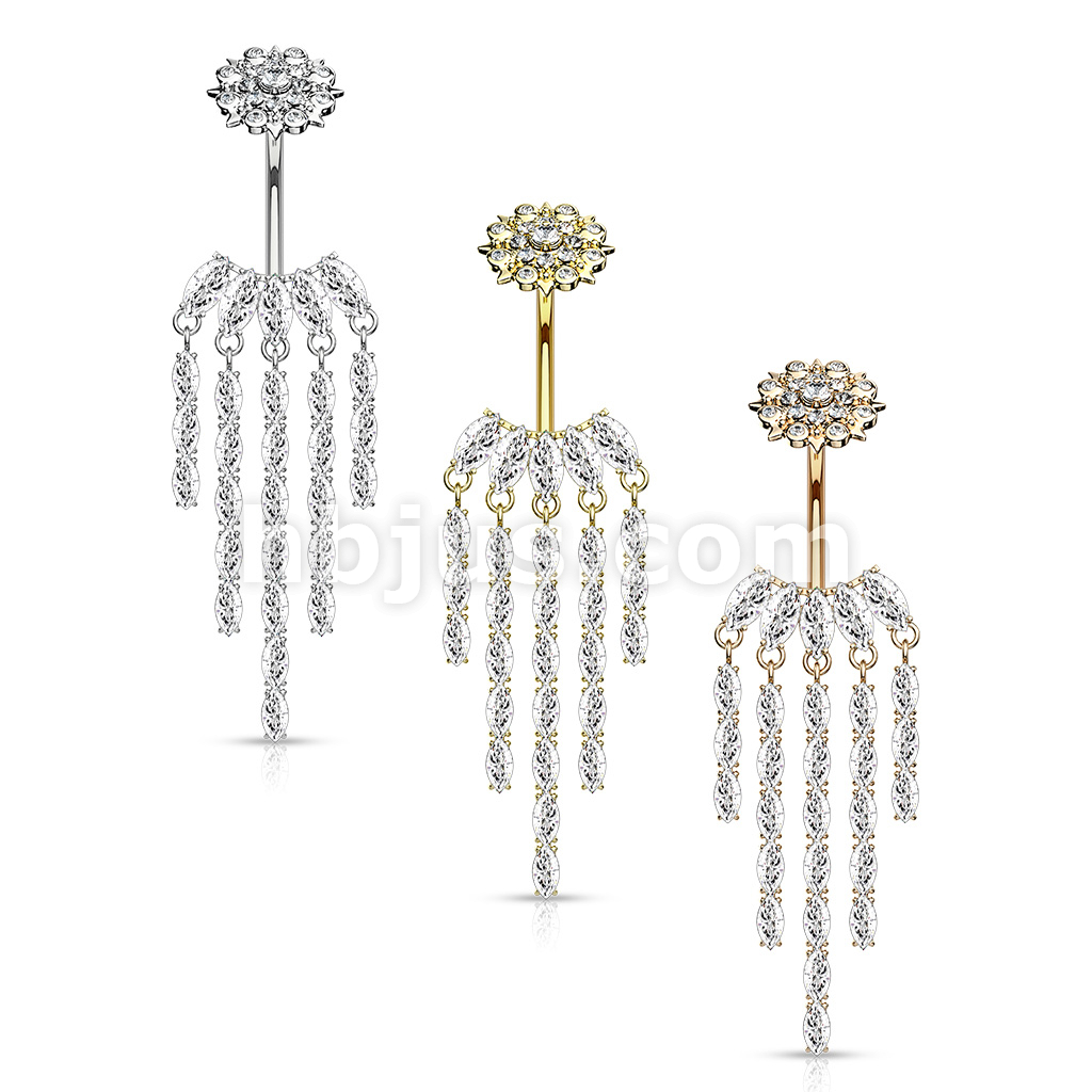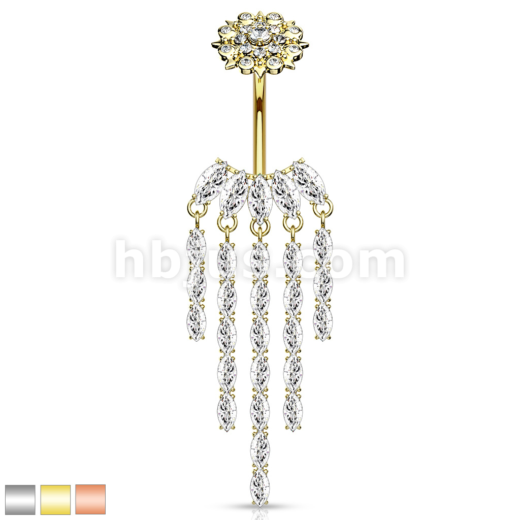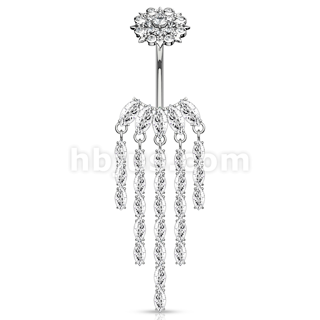 CZ Chandelier with Internally Threaded CZ Flower Top 316L Surgical Steel Belly Button Navel Rings