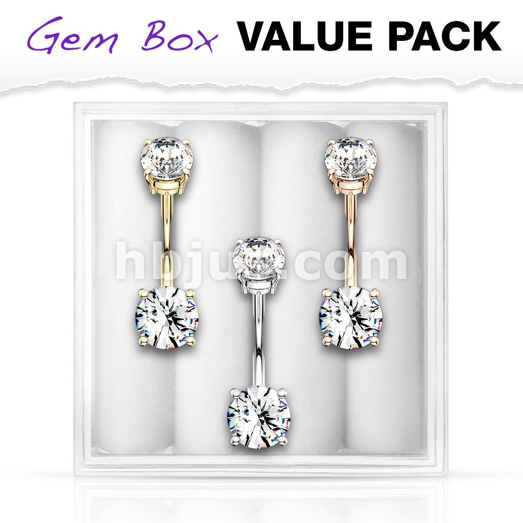 3 Pcs Pre Loaded Assorted Internally Threaded 316L Surgical Steel Belly Navel Ring Gem Box Package