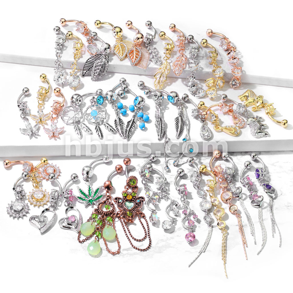Starter Pack 119 Pcs Fancy Dangle Belly/Navel Rings Pre Assorted Best Sellers