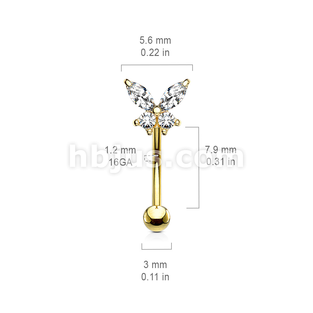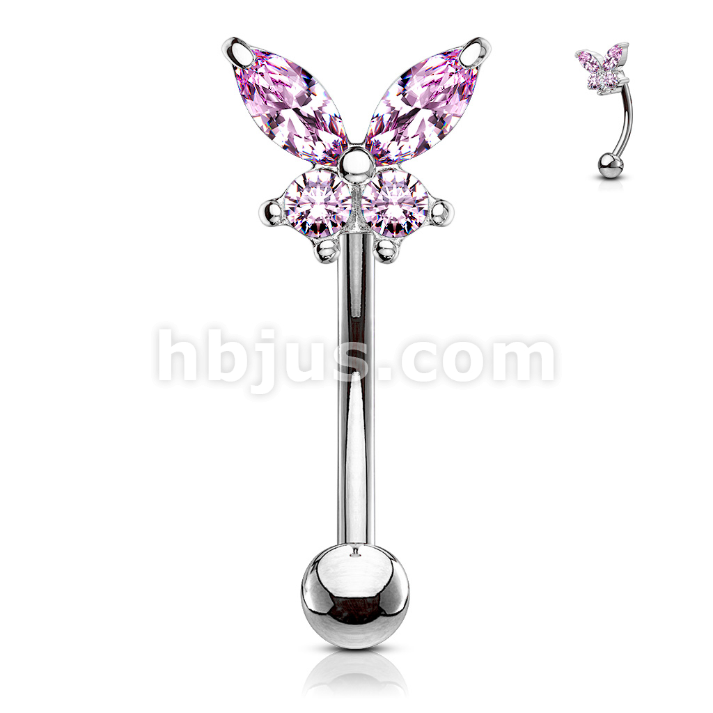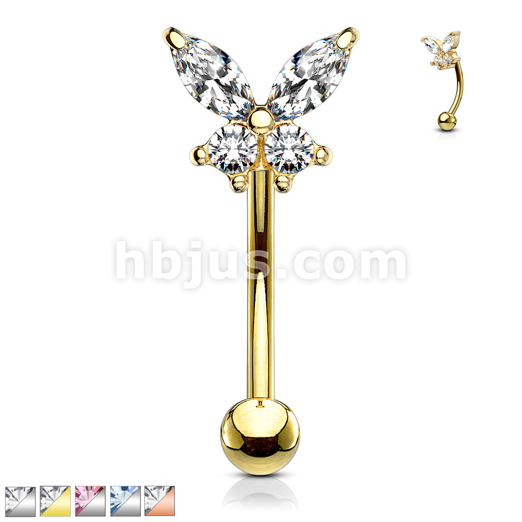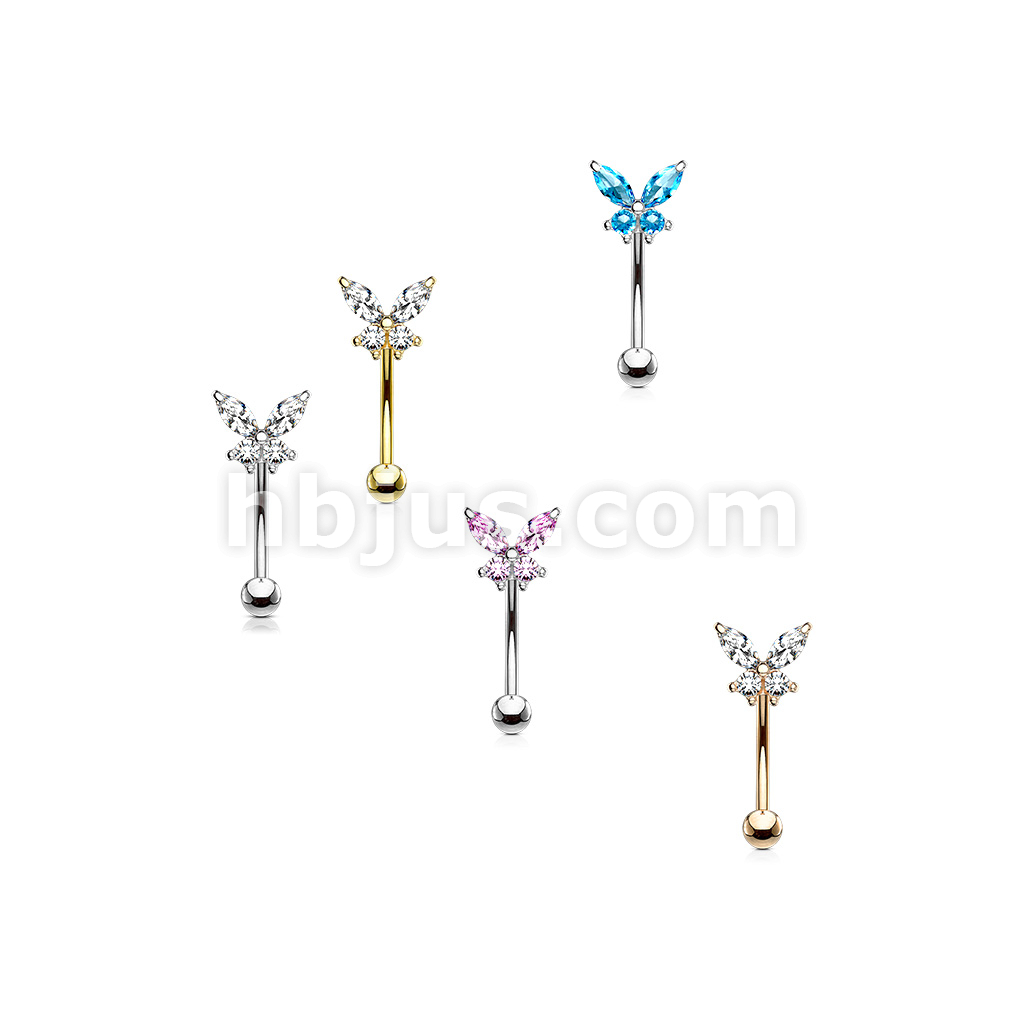 316L Surgical Steel Butterfly CZ Prong Set Top Eyebrow Rings/ Curved Barbells