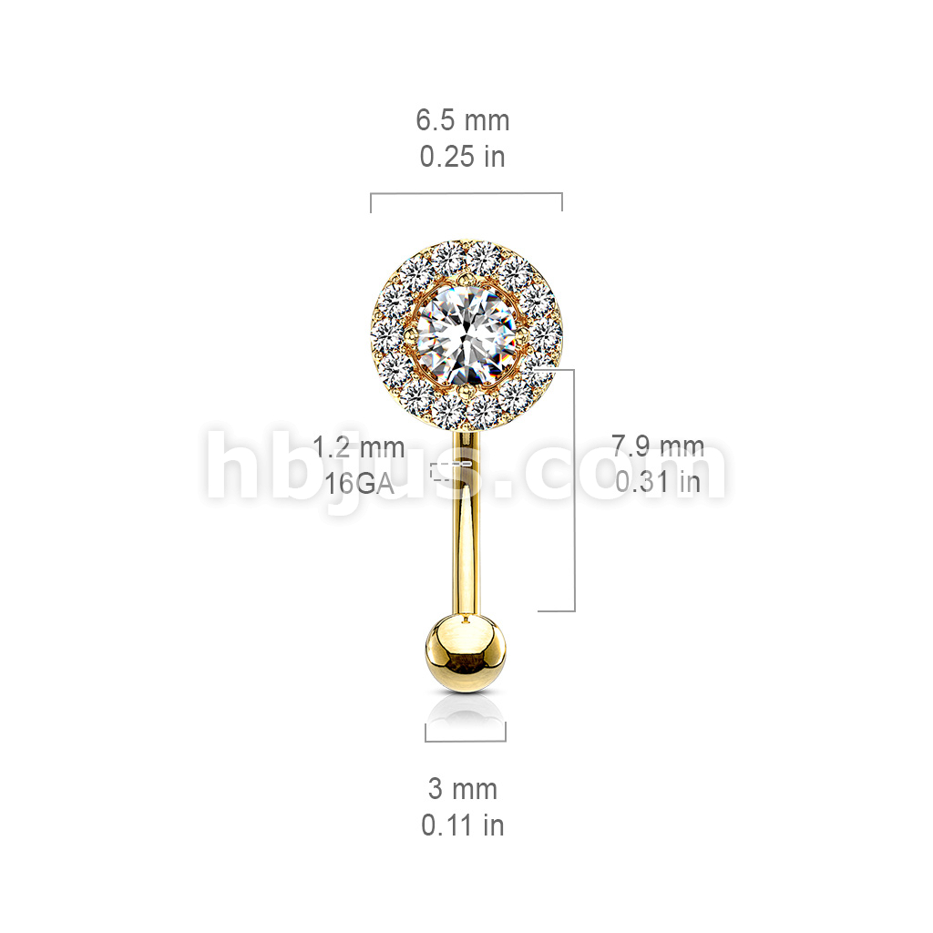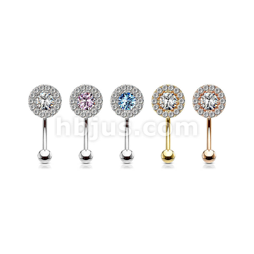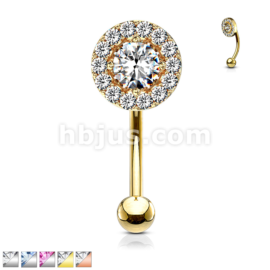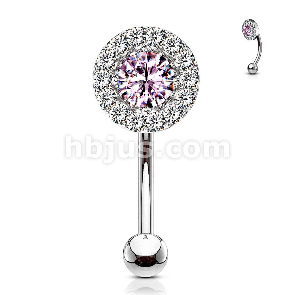 316L Surgical Steel Prong Set Round CZ Center With CZ Paved Surrounding Eyebrow Rings/ Curved Barbells