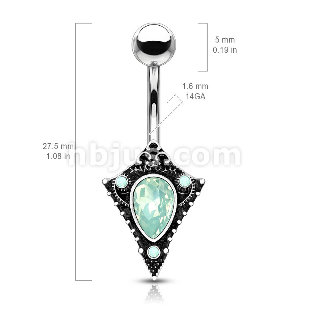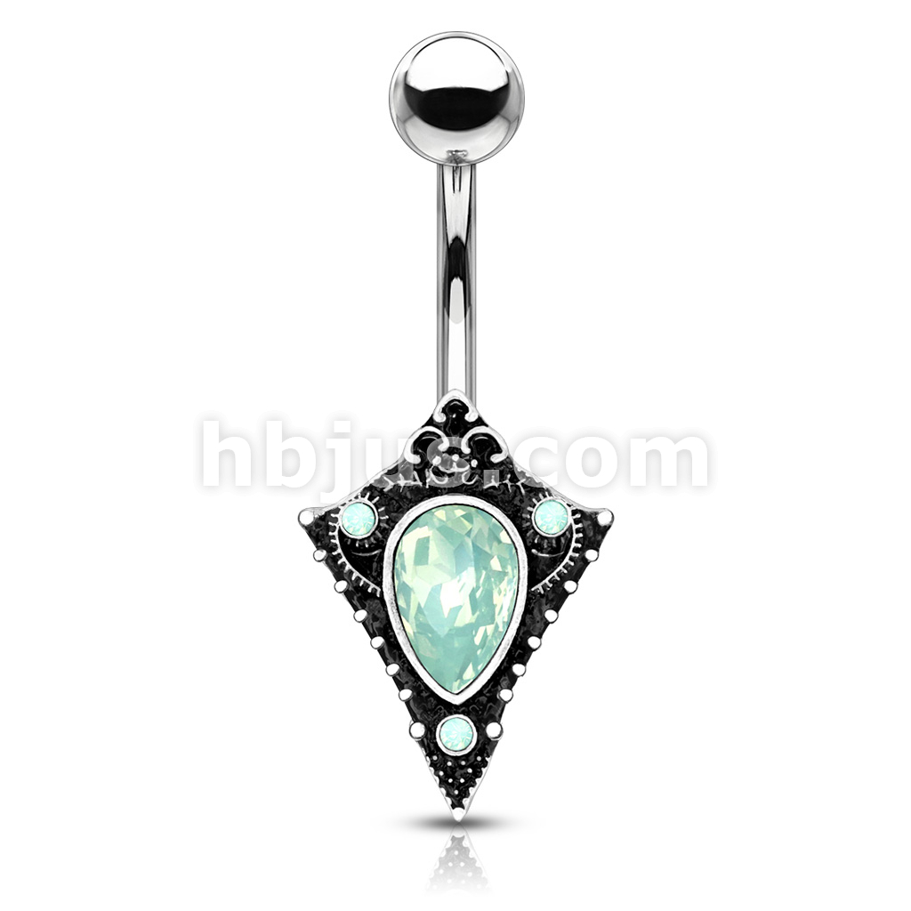 Green Opalite Crystal Set Tribal Shield 316L Surgical Steel Belly Button Navel Rings