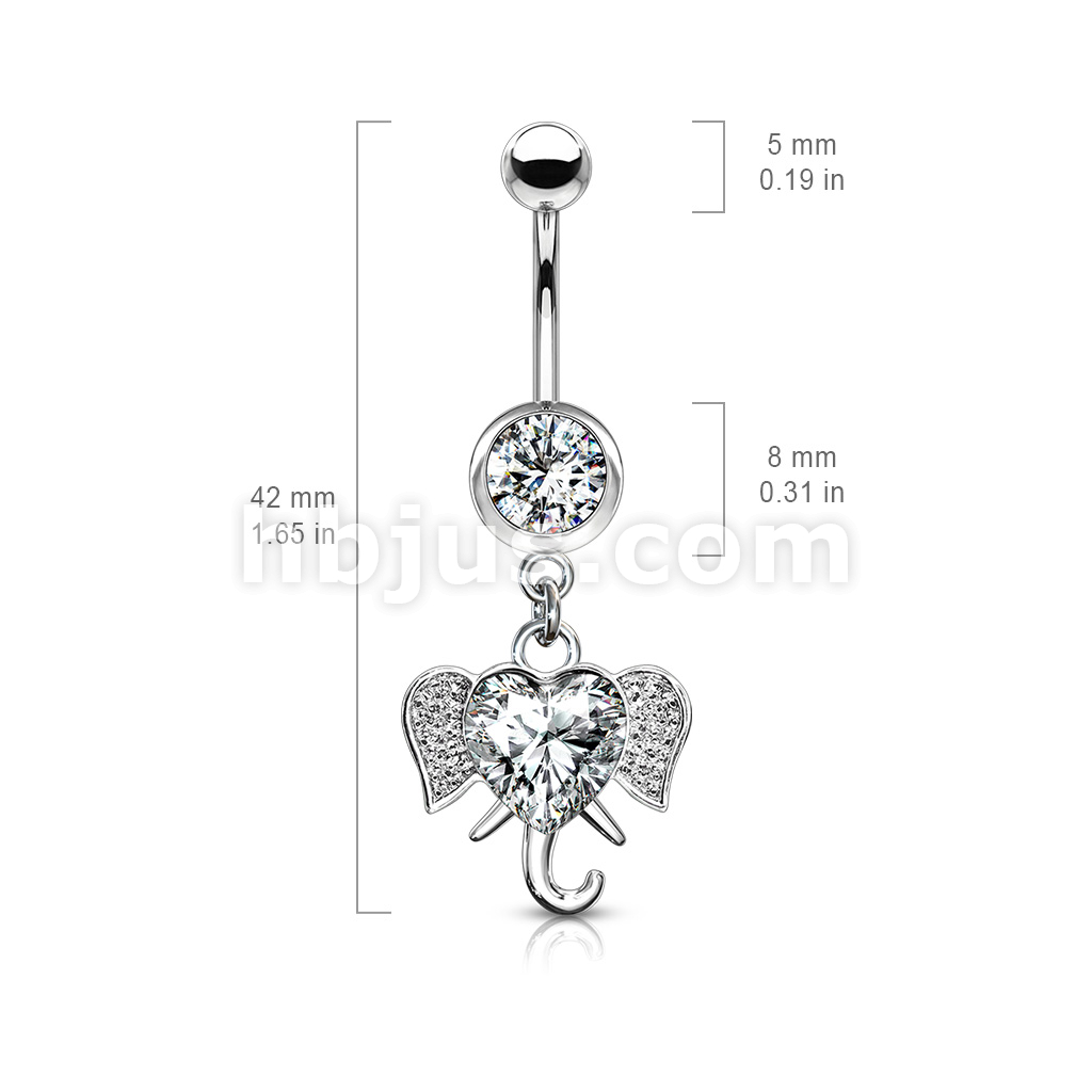 316L Surgical Steel Heart CZ Set Elephant Dangle Belly Button Ring