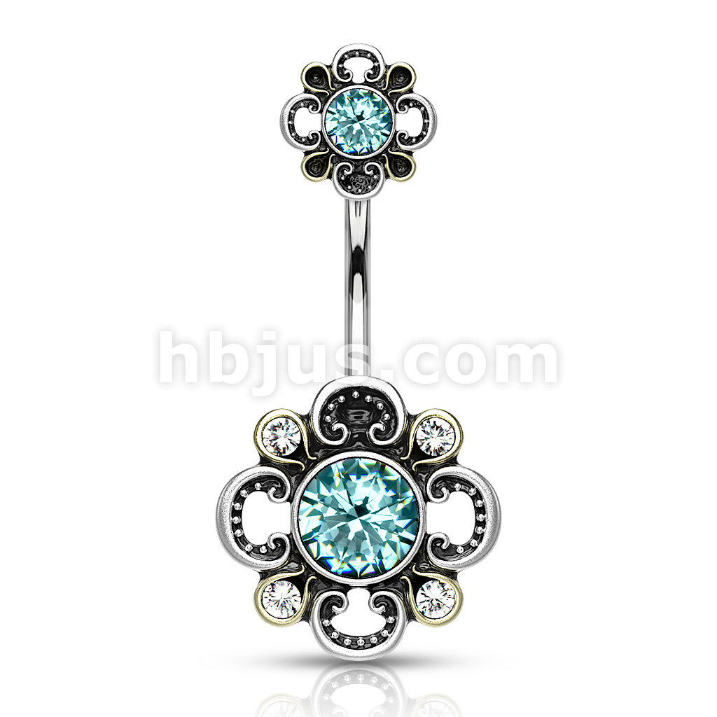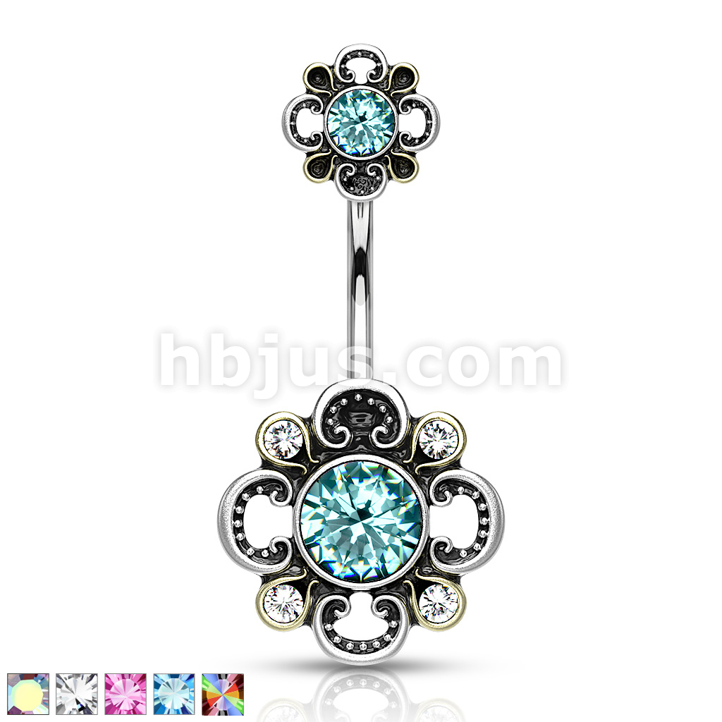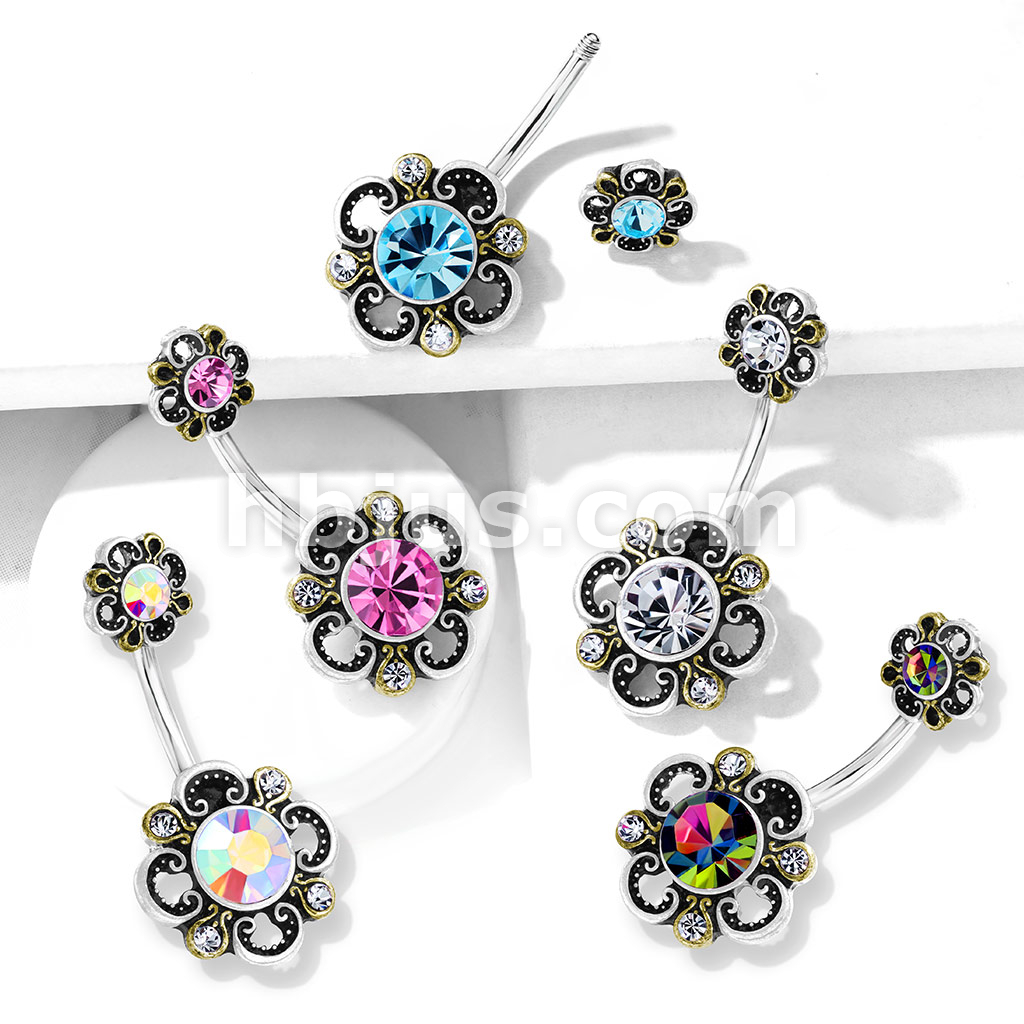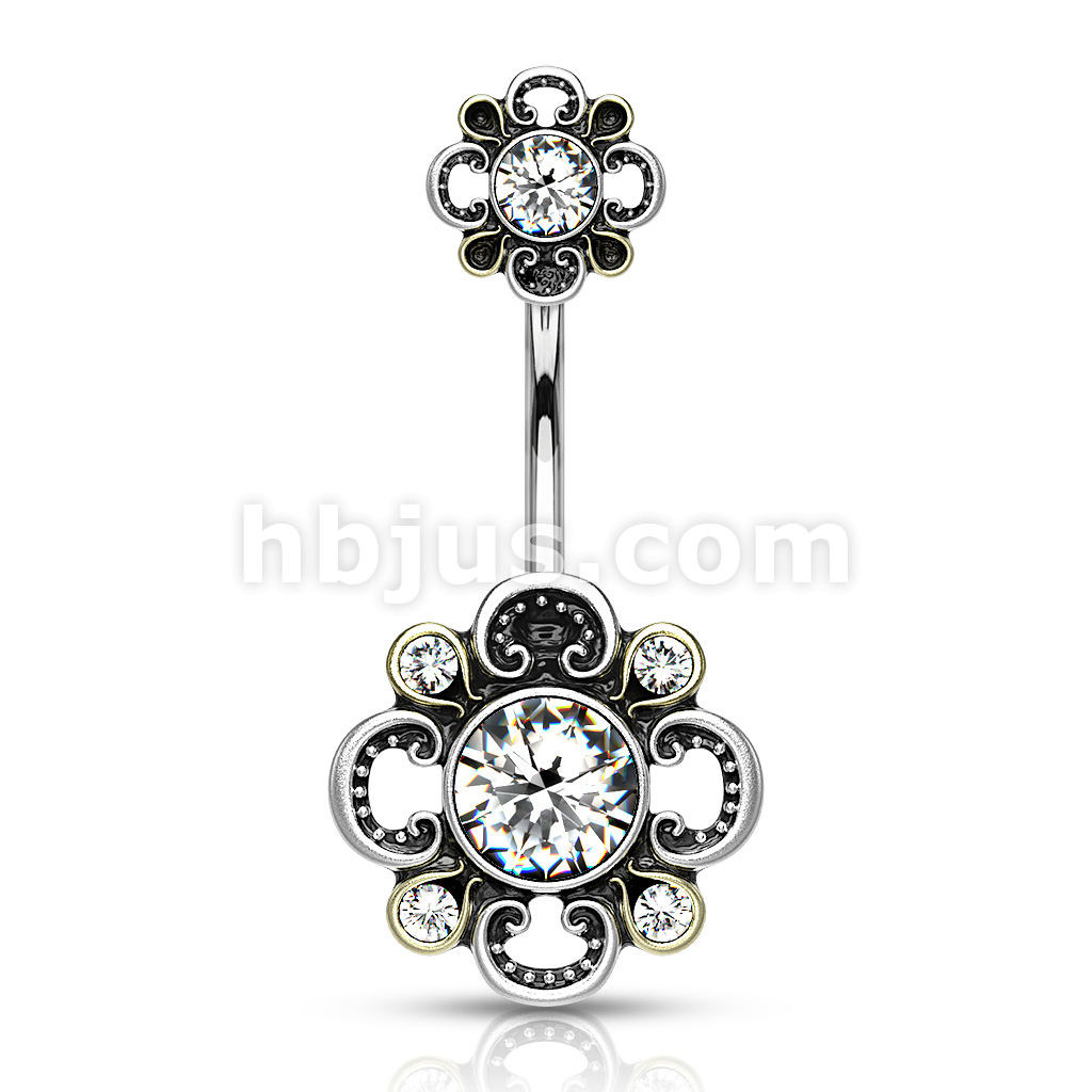316L Surgical Steel Floral Filigree Double Flower Belly Button Ring