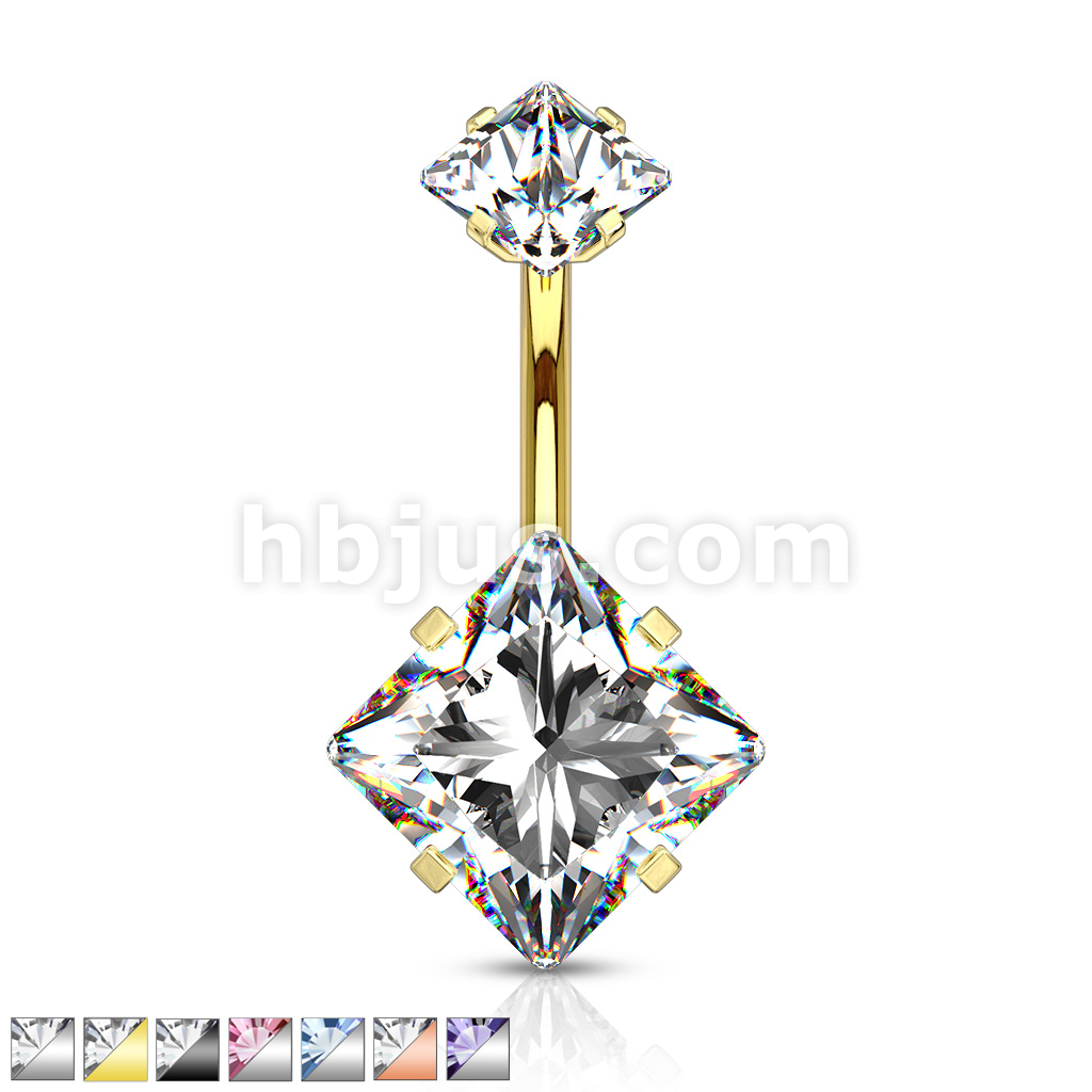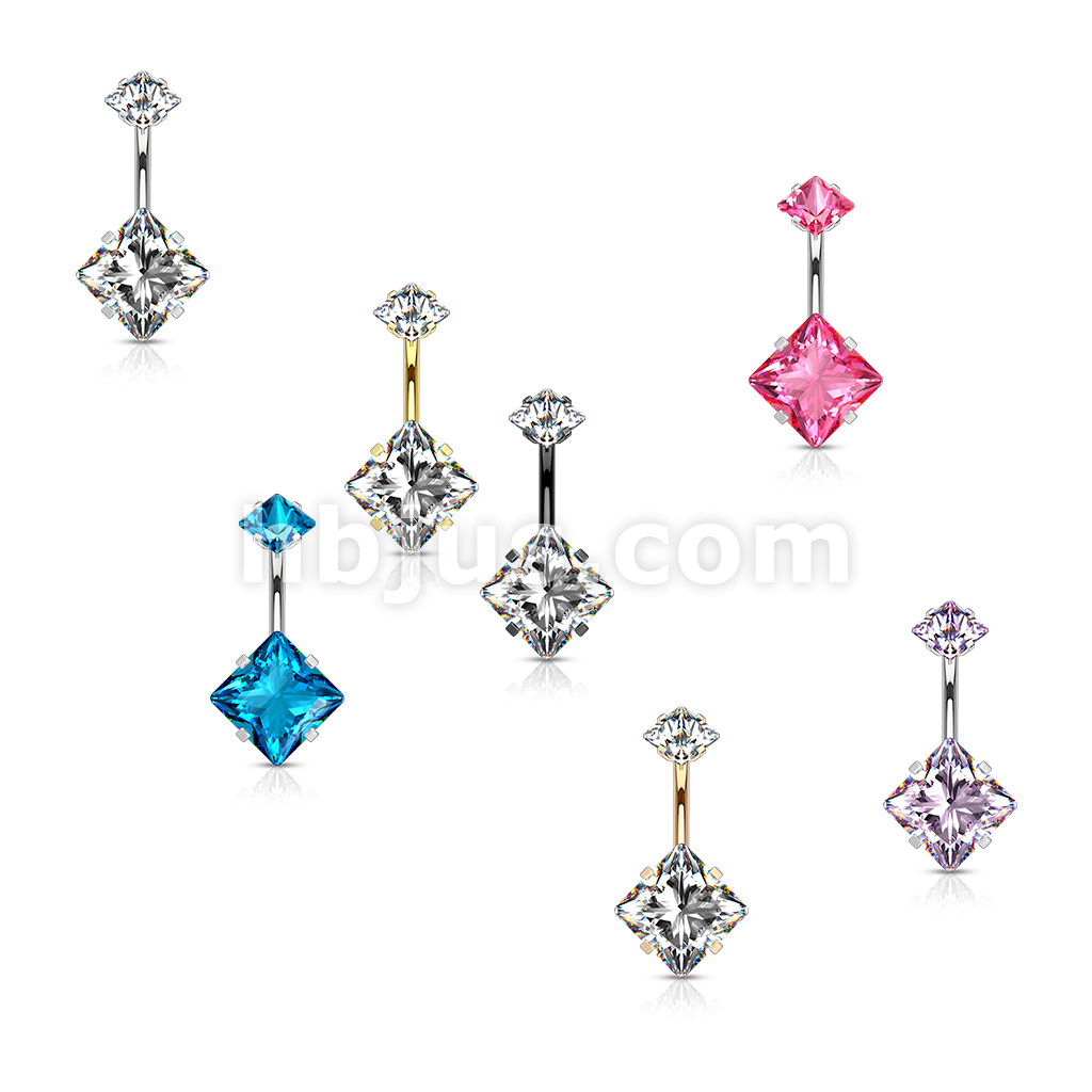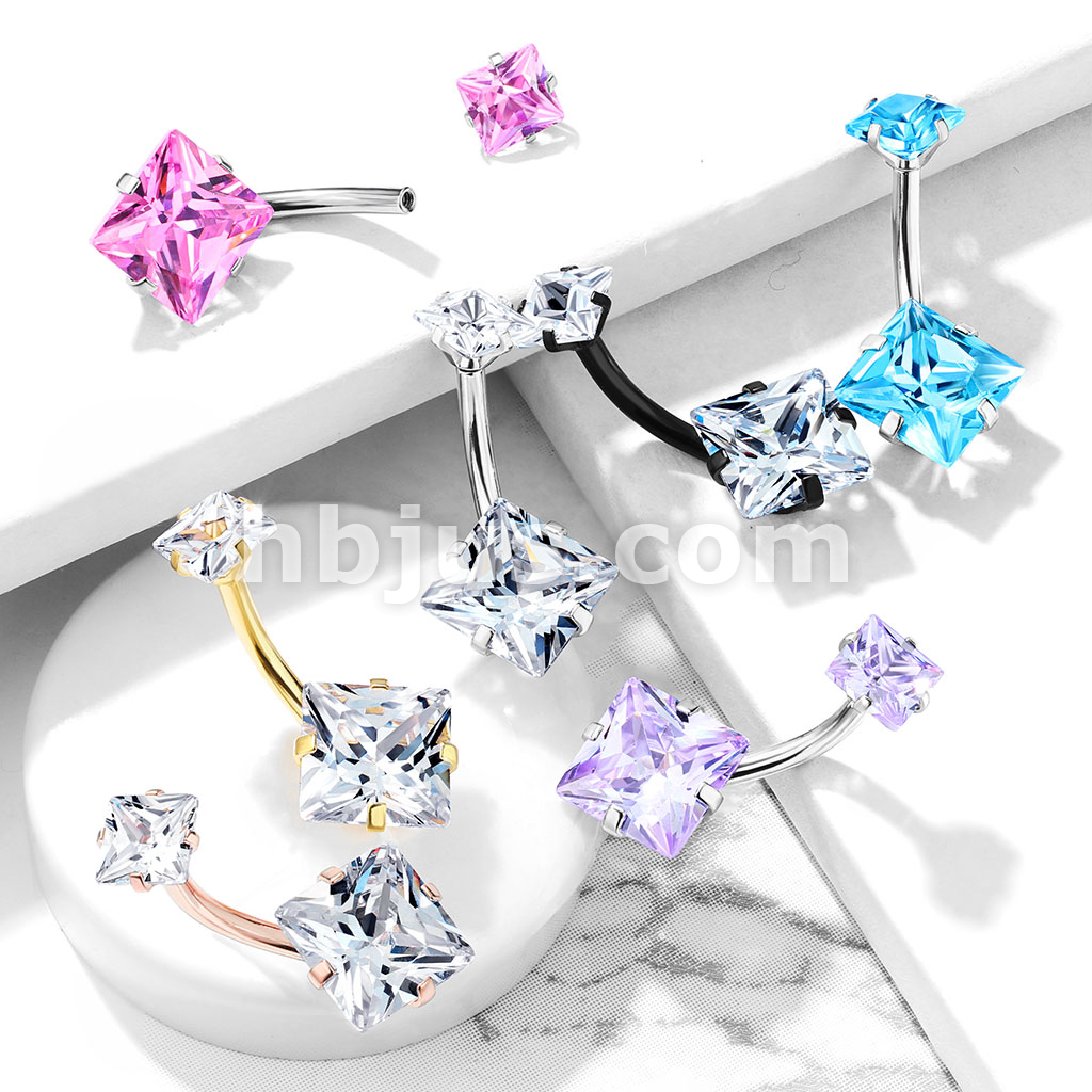 Square CZ Prong Set with Internal thread Top Double Jeweled 316L Surgical Steel Belly Button Navel Rings