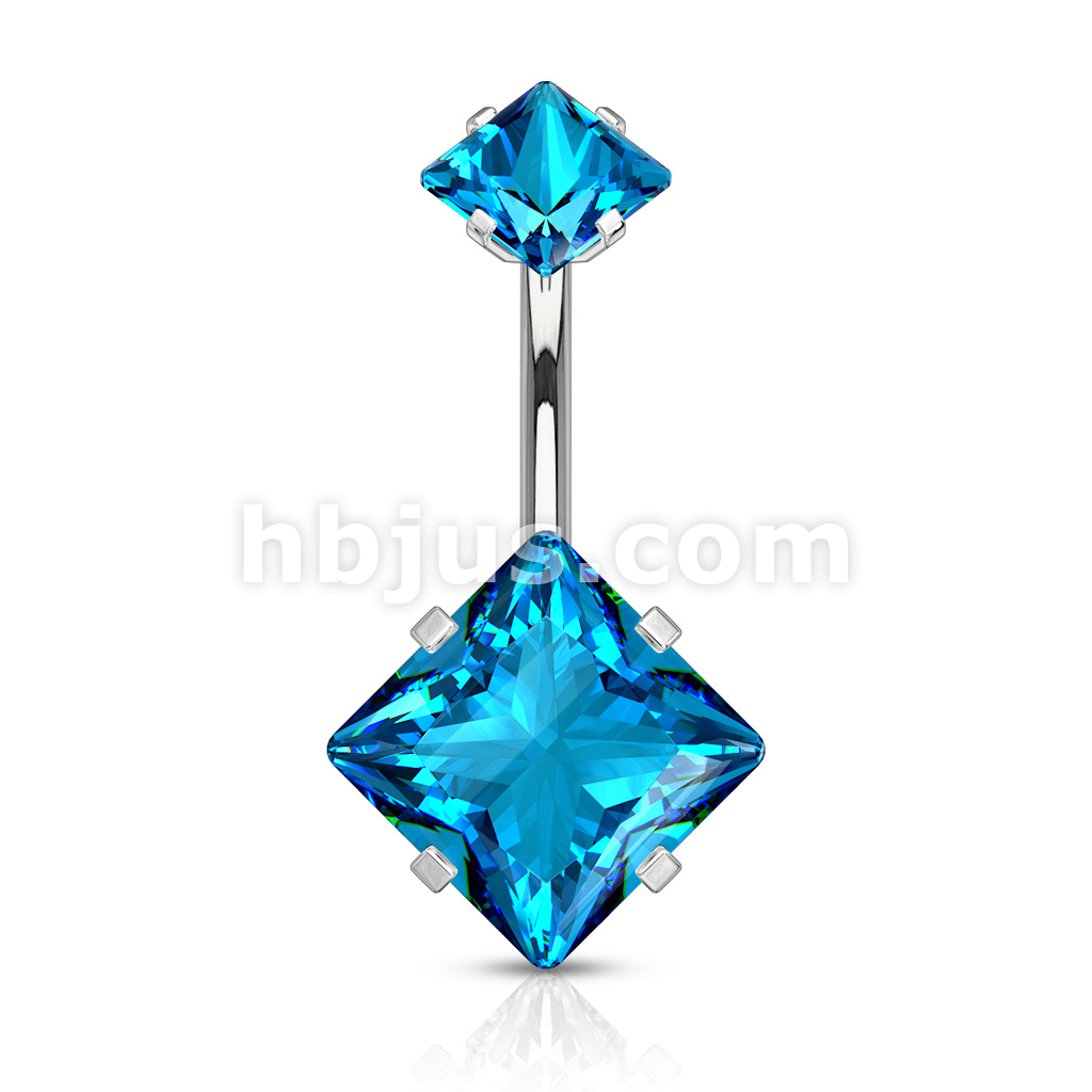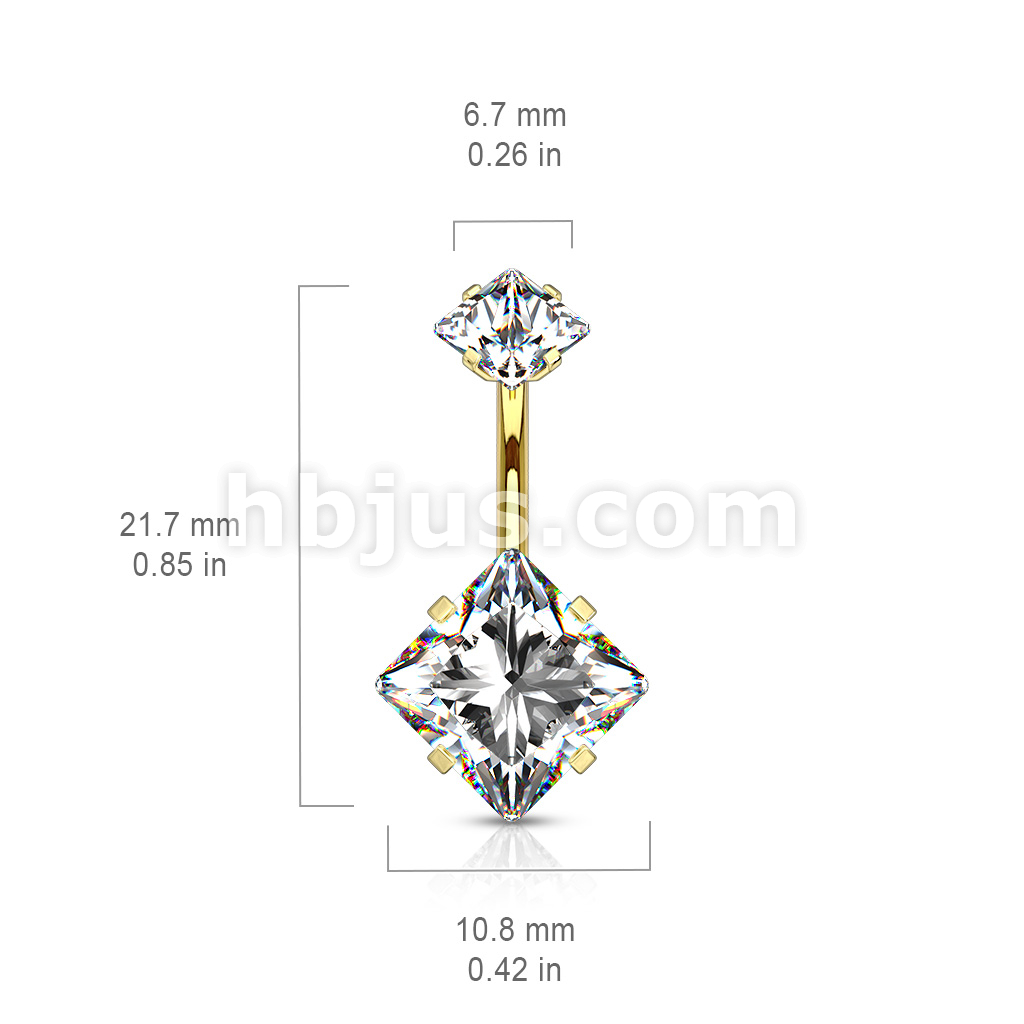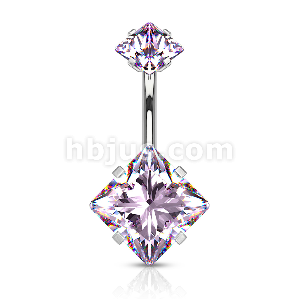 Square CZ Prong Set with Internal thread Top Double Jeweled 316L Surgical Steel Belly Button Navel Rings