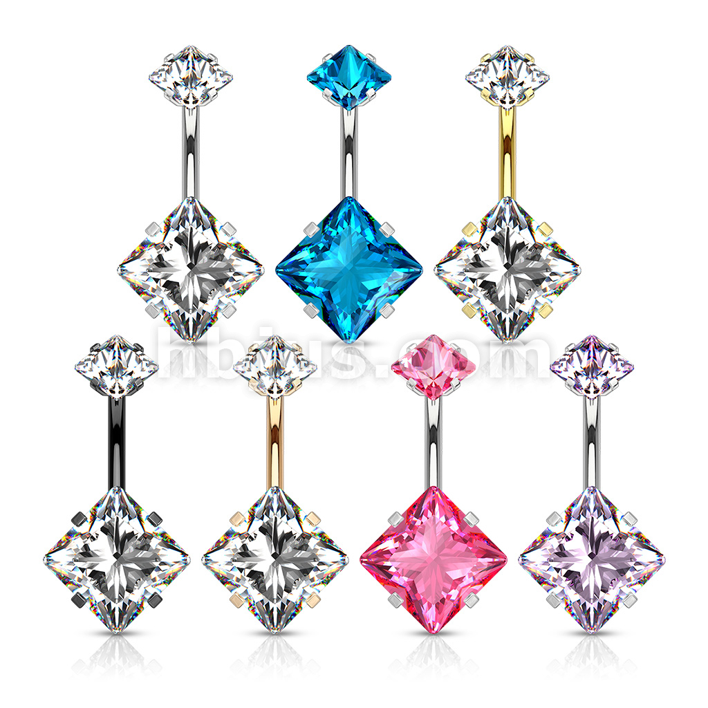 70 Pcs All 316L Surgical Steel Double Prong Set Square CZ Belly Button Navel Rings Bulk Pack (10 Pcs x 7 Colors)