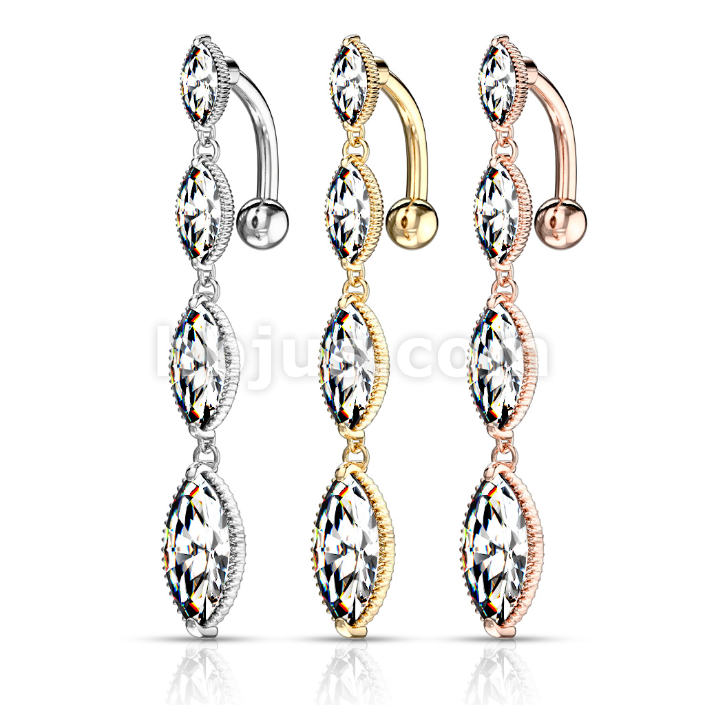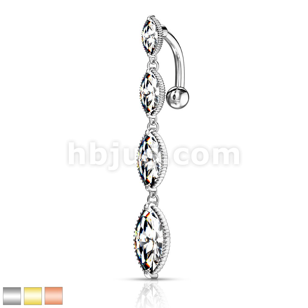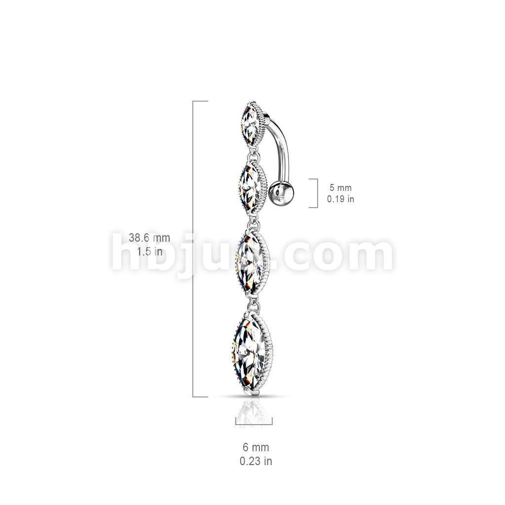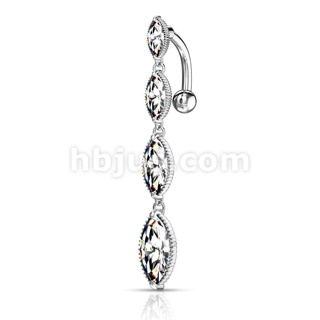 316L Surgical Steel Four Marquise CZ Vertical Drop Belly Button Ring