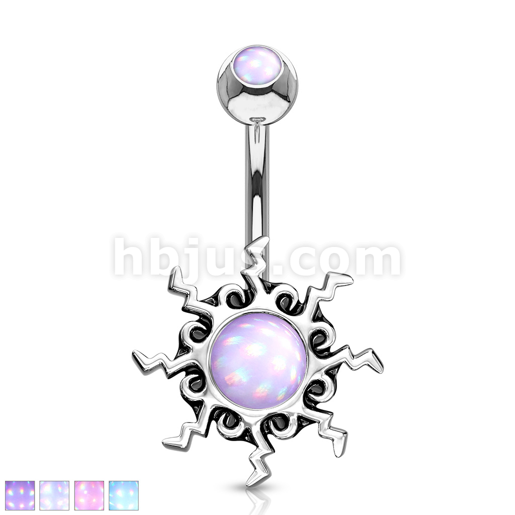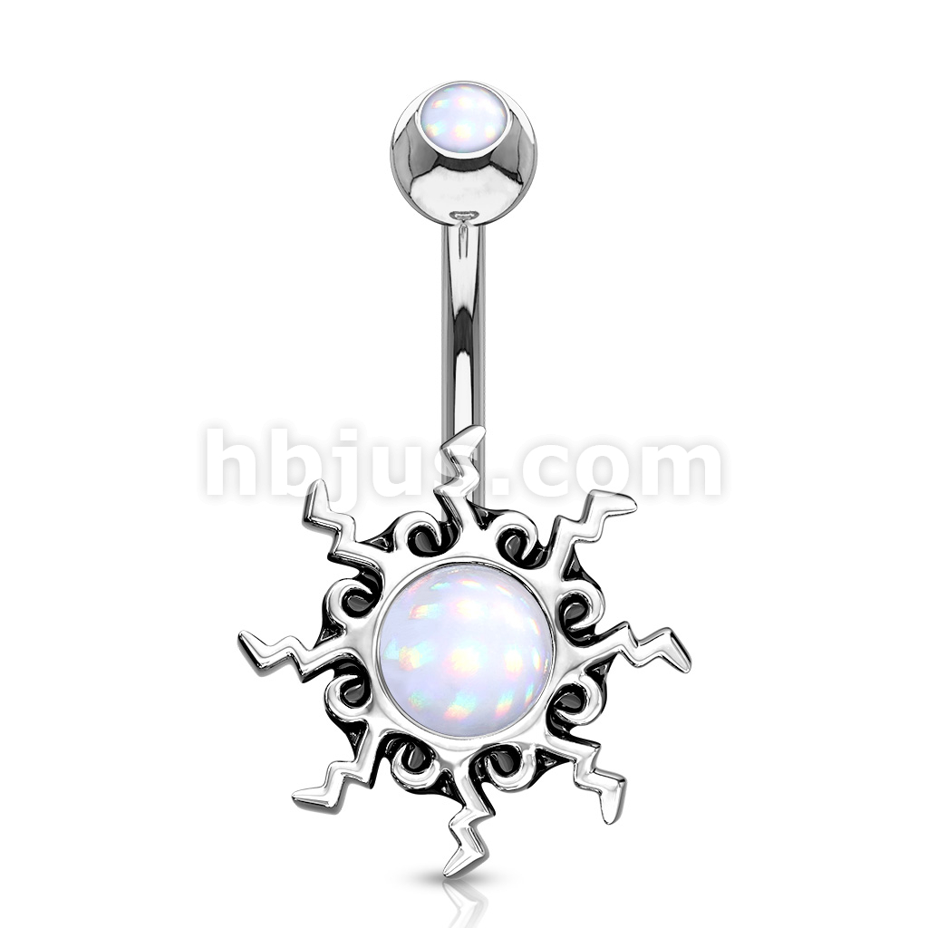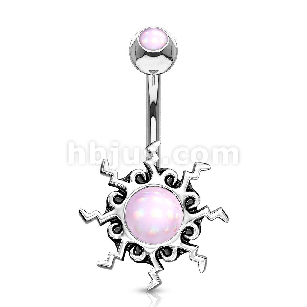 316L Surgical Steel Tribal Sun Illuminating Stone Center With Illuminating Stone Set Top Belly Button Ring
