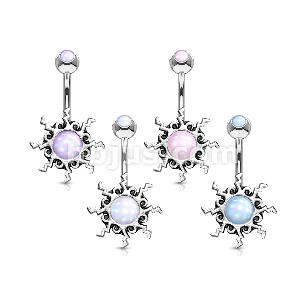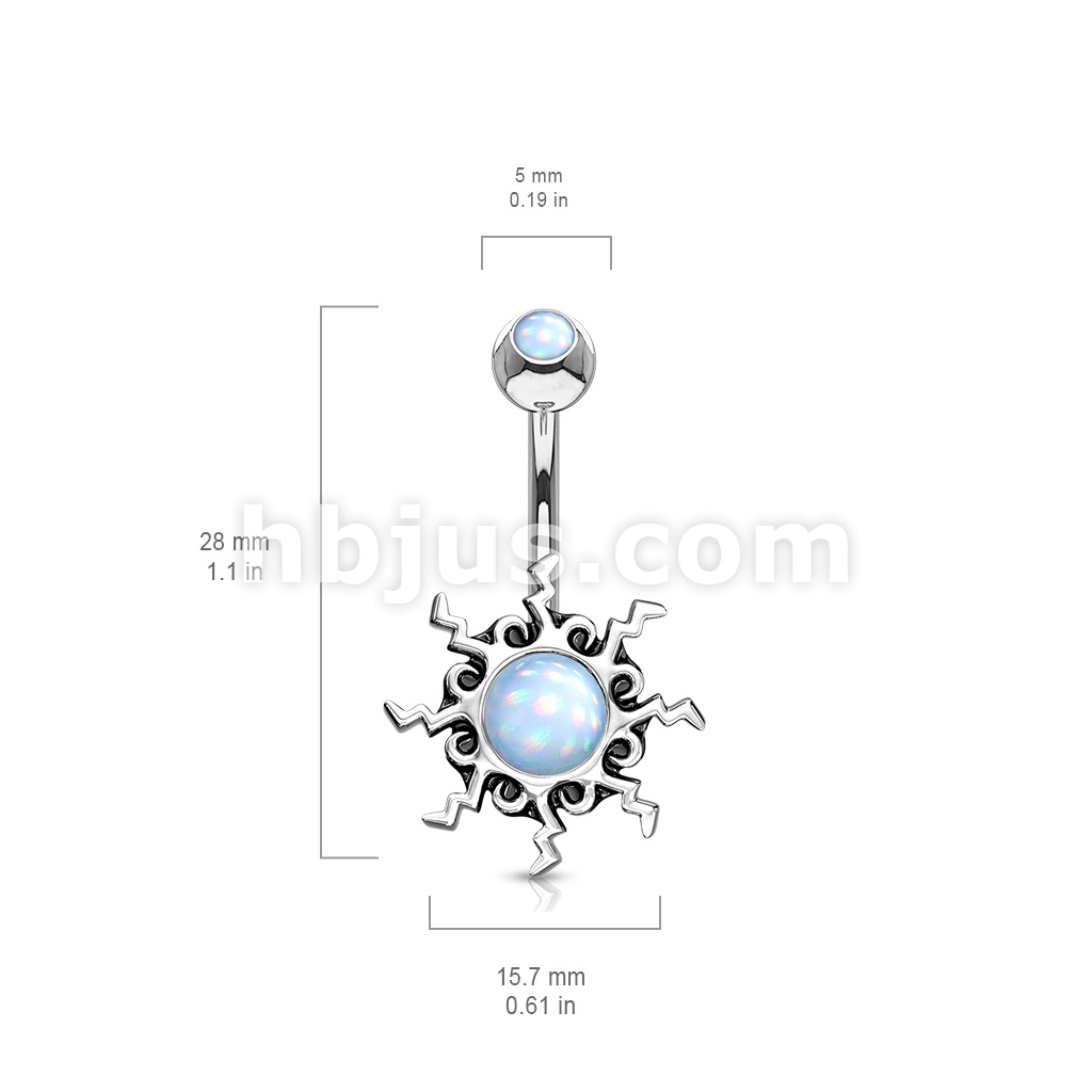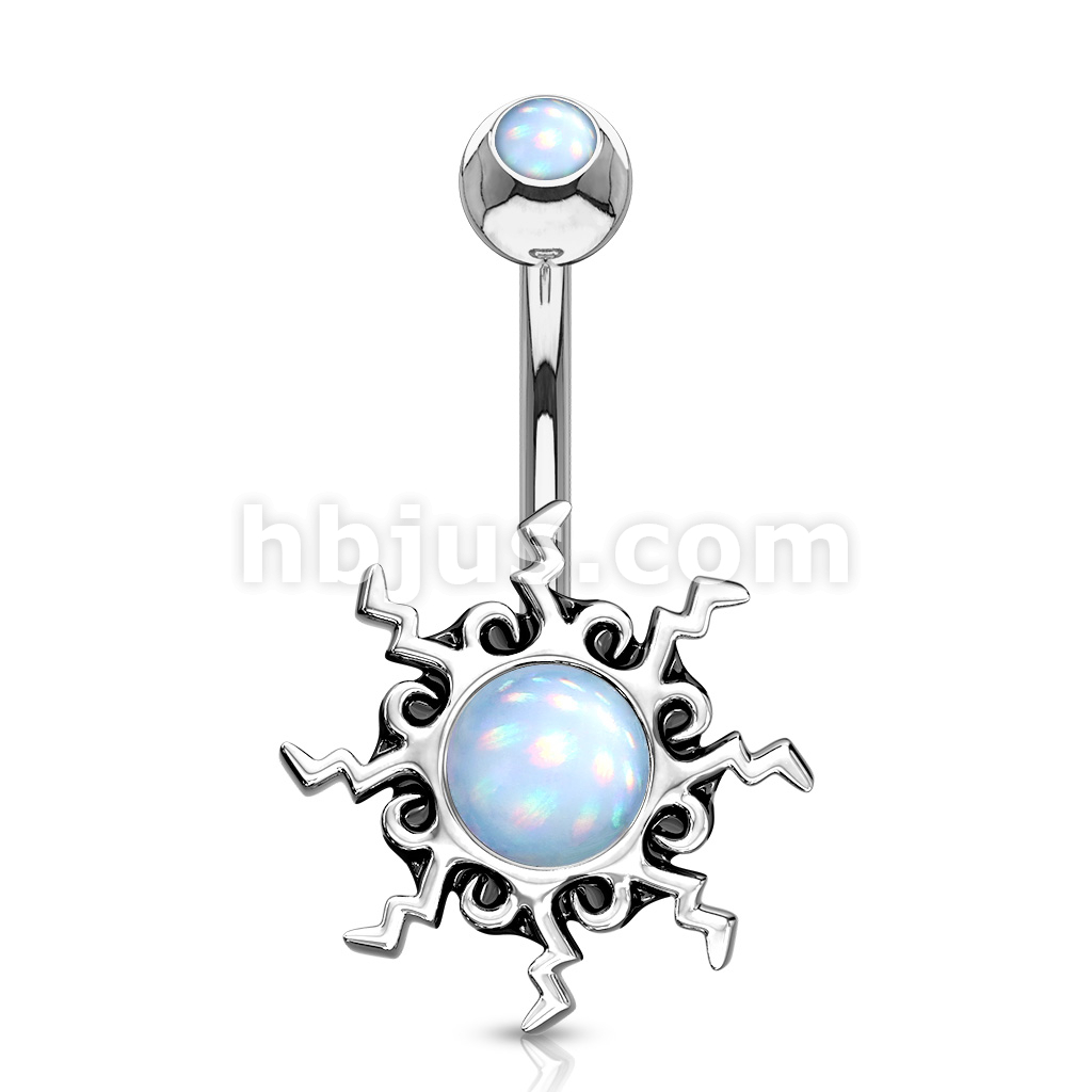 316L Surgical Steel Tribal Sun Illuminating Stone Center With Illuminating Stone Set Top Belly Button Ring