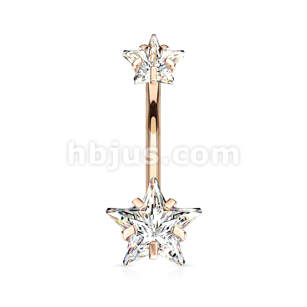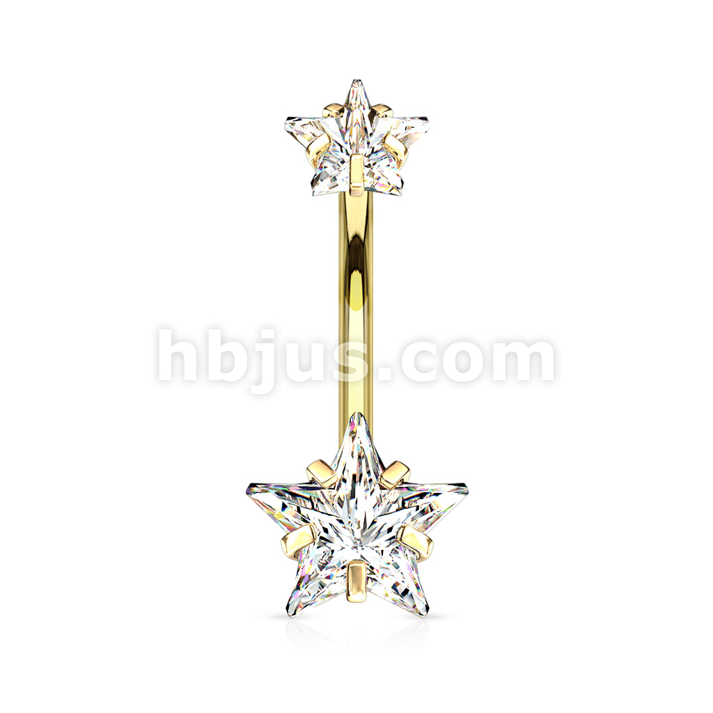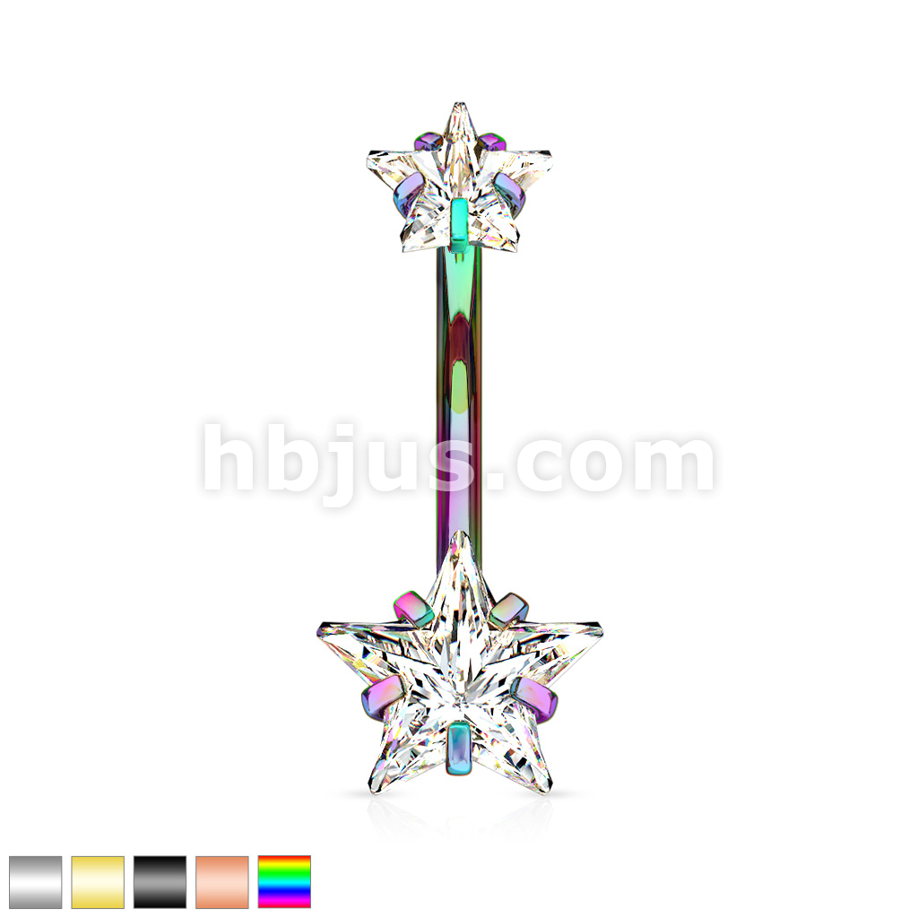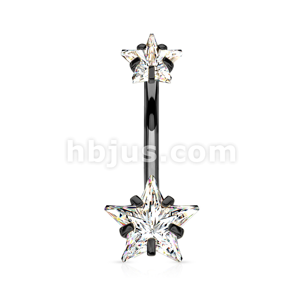 All 316L Surgical Steel Prong Set Double Star CZ Internally Threaded Belly Button Ring