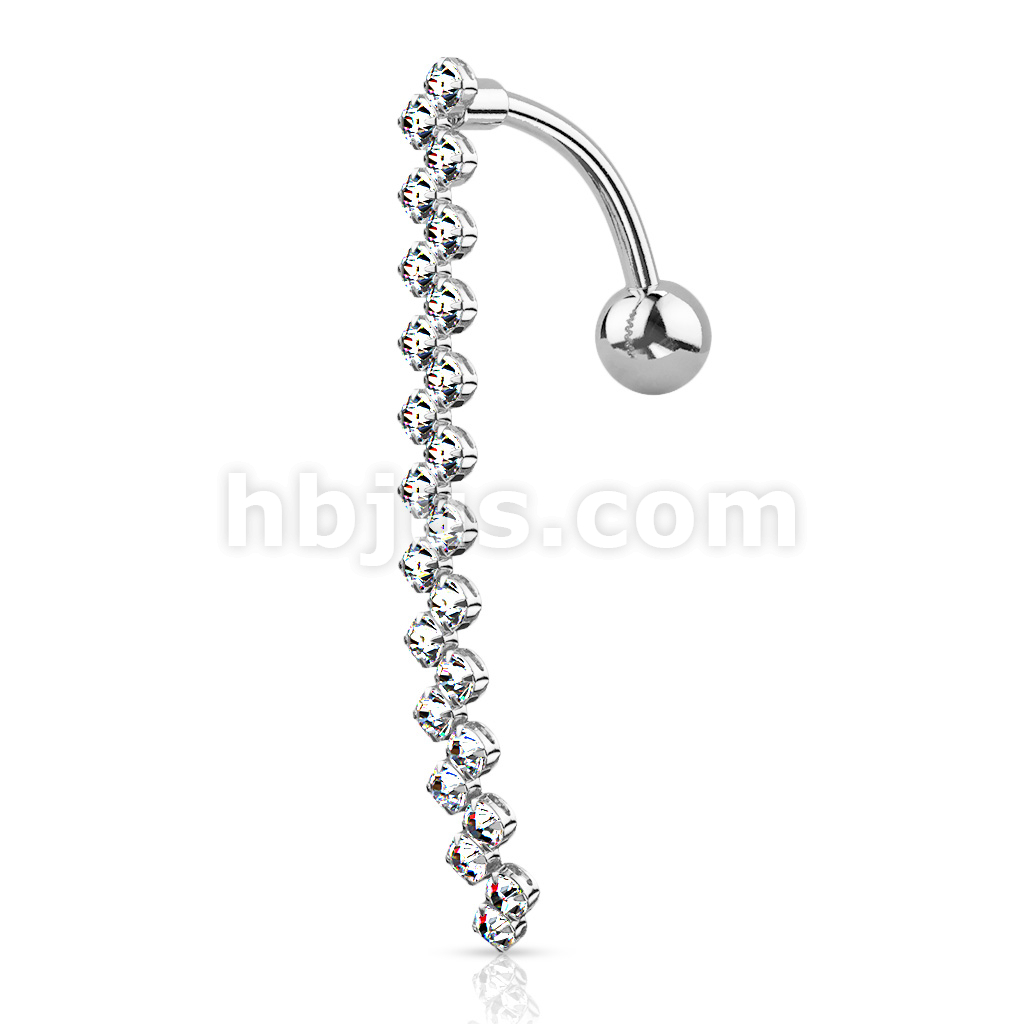 316L Surgical Steel CZ Paved Zig Zag Line Belly Button Ring