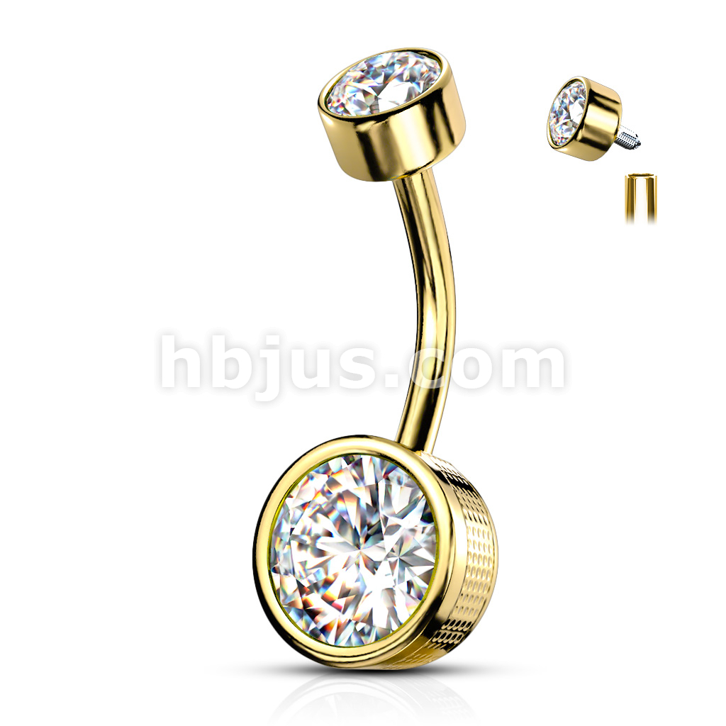 316L Surgical Steel Bezel Set Round CZ and Stamped Sides With Internally Threaded Top Belly Button Ring
