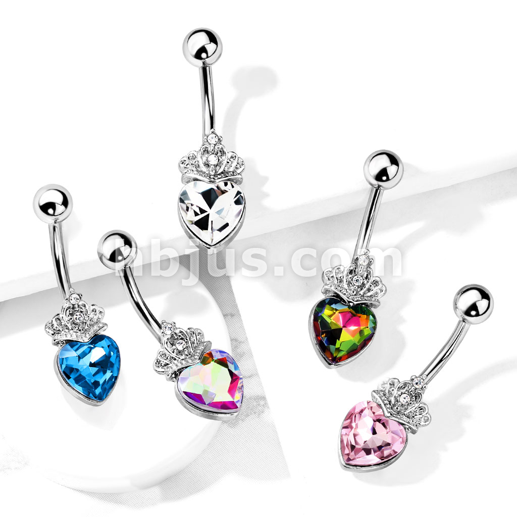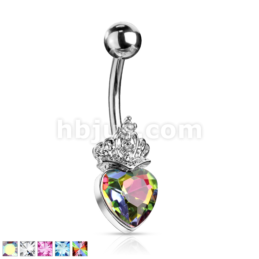 316L Surgical Steel Heart Crystal and Crystal Set Tiara Belly Button Ring