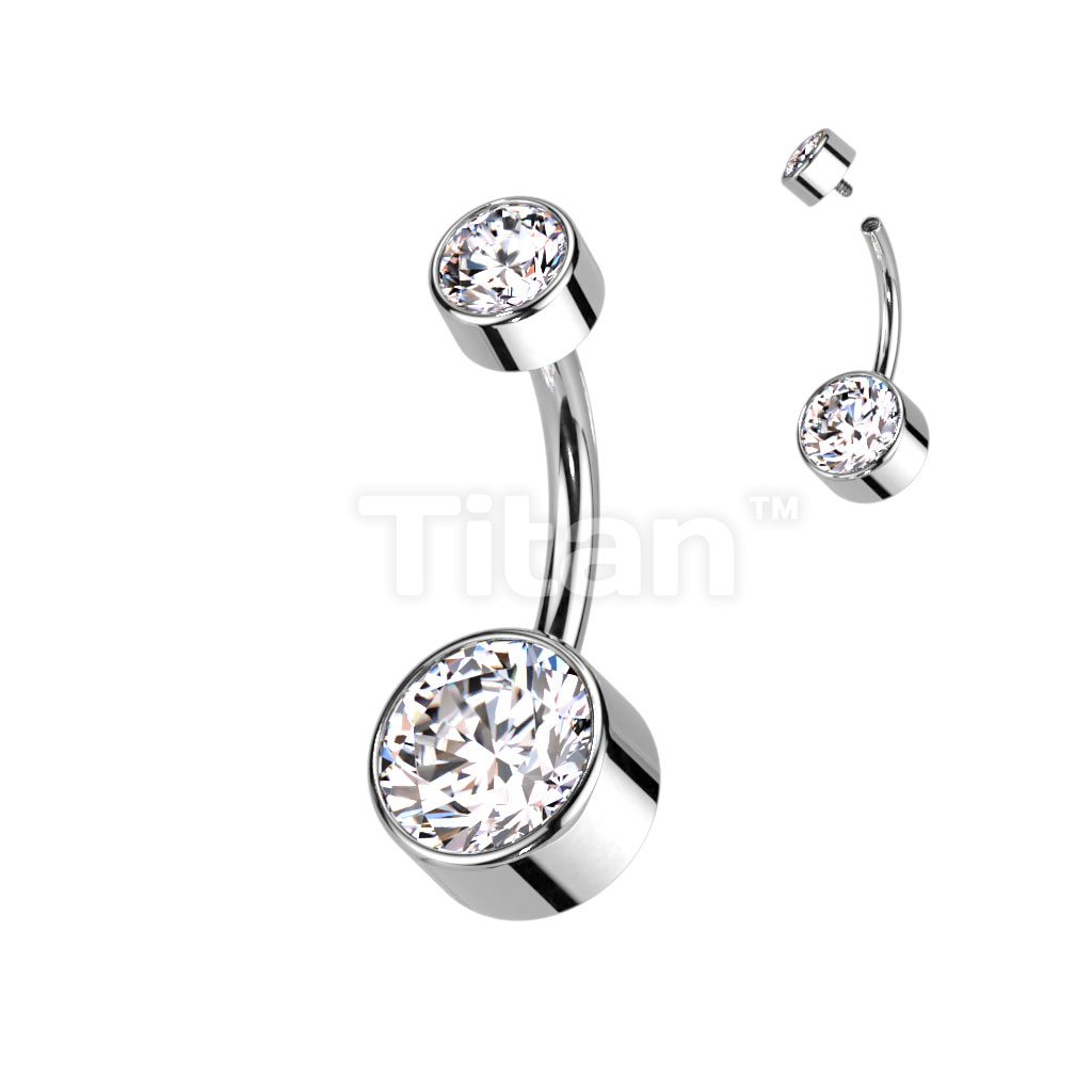 Implant Grade Titanium Internally Threaded Bezel Set Round Swarovski Double Crystal Belly Ring