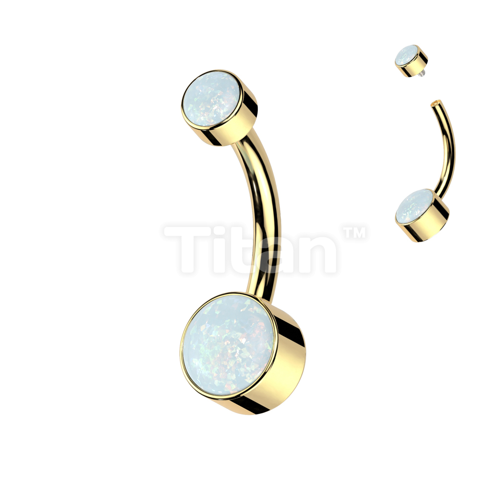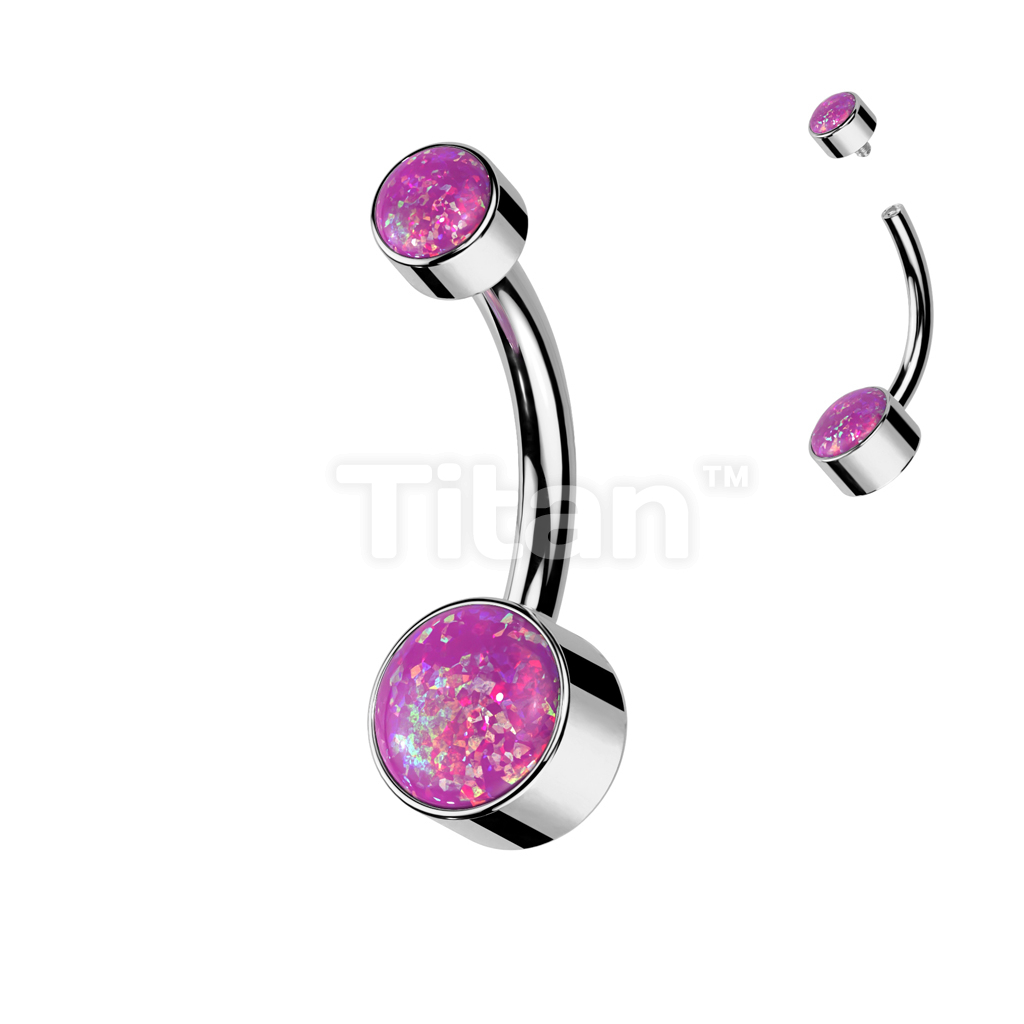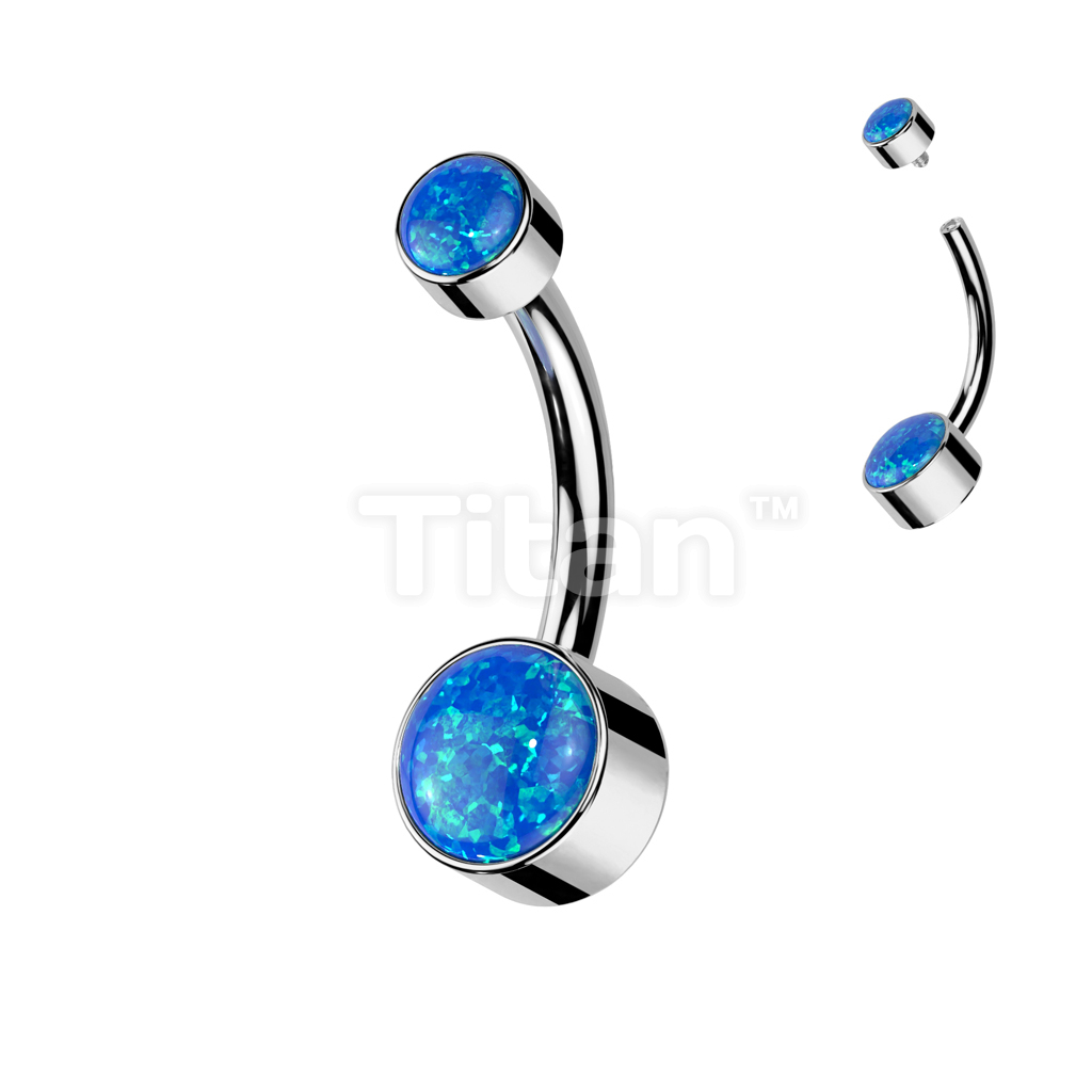 Implant Grade Titanium Internally Threaded Round Bezel Set Double Opal Belly Ring