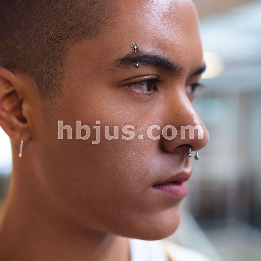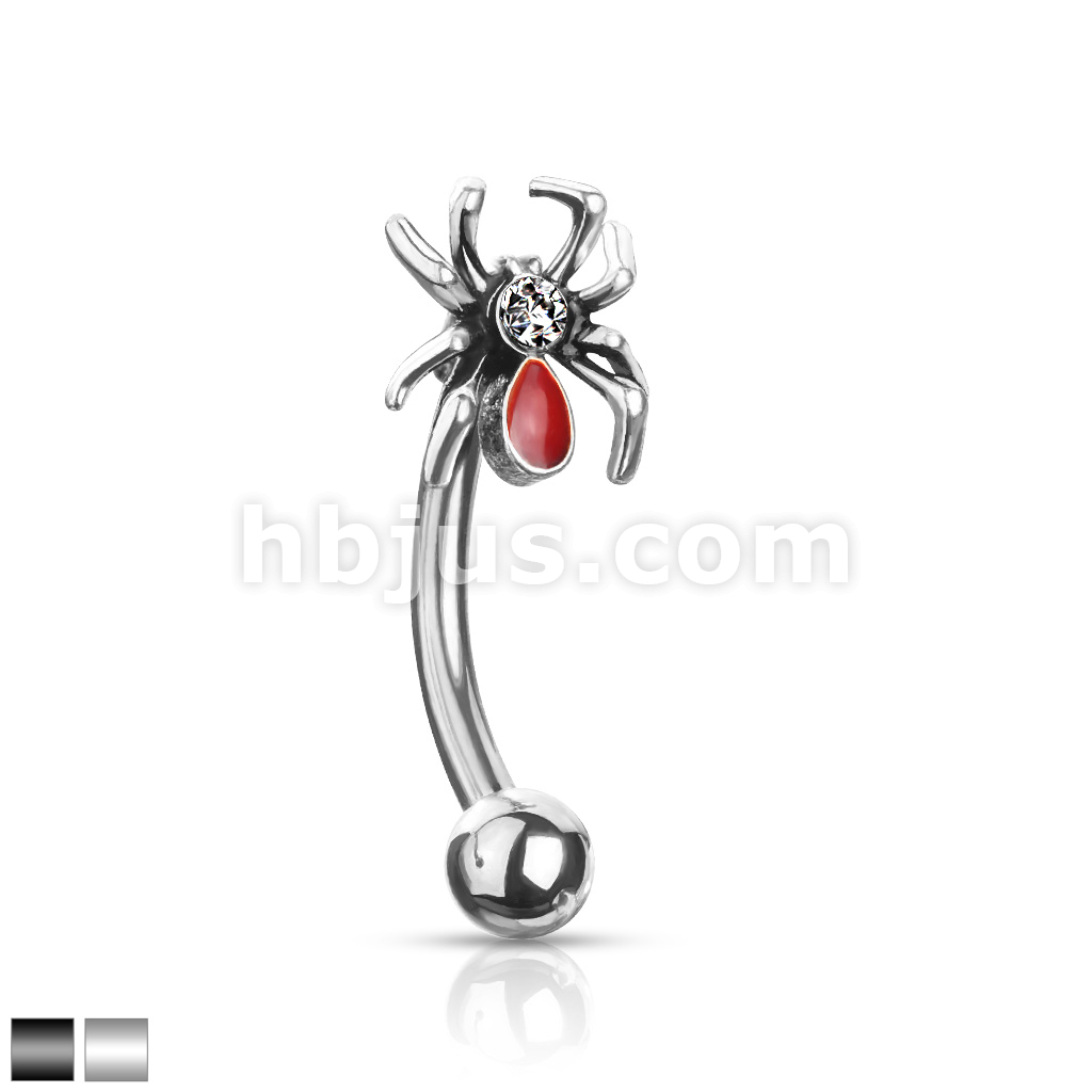 316L Surgical Steel Crystal Set Red Spider Curved Barbells, Eyebrow Rings