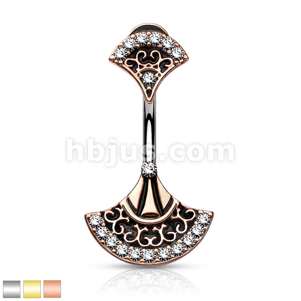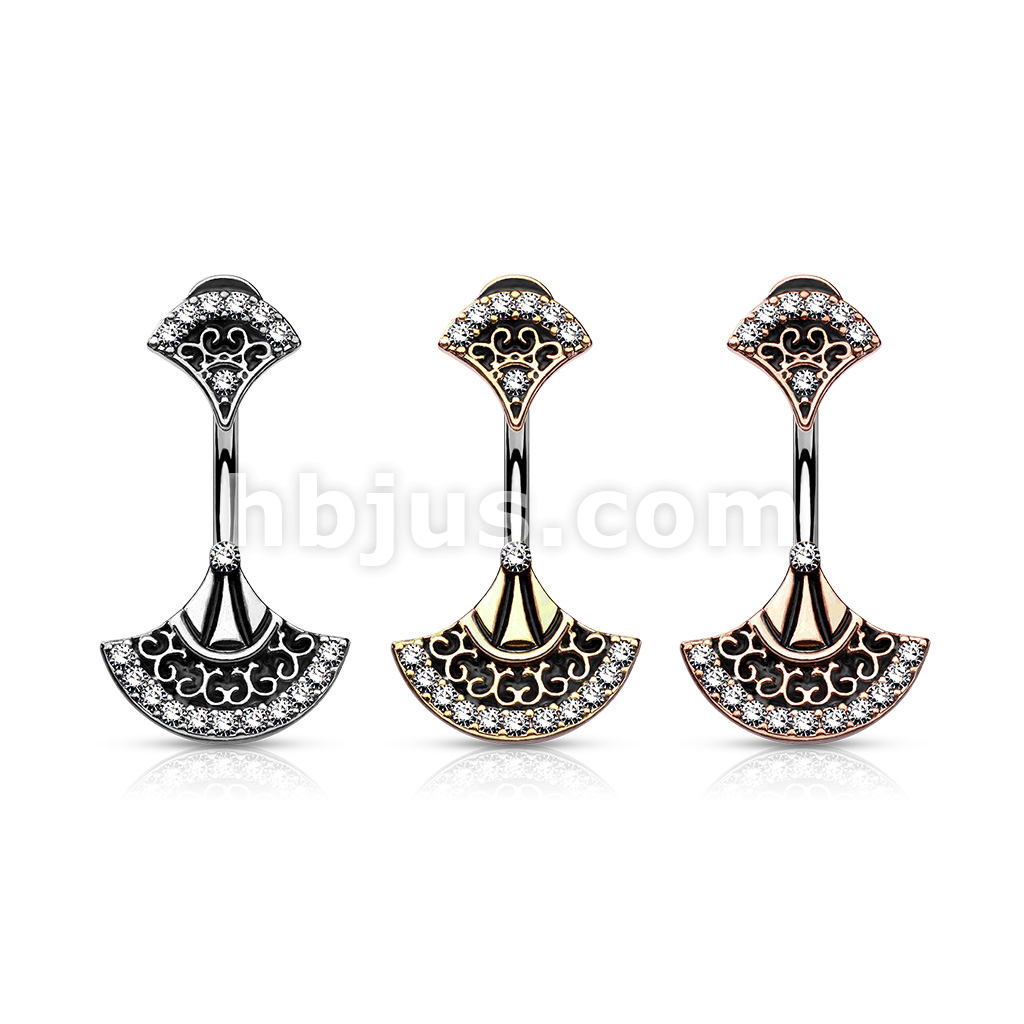316L Surgical Steel Double Jeweled Tribal Fan Belly Button Ring