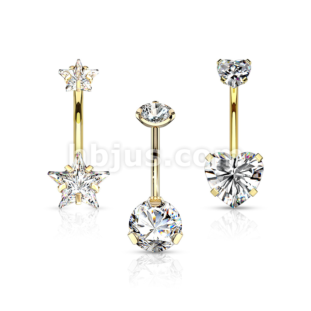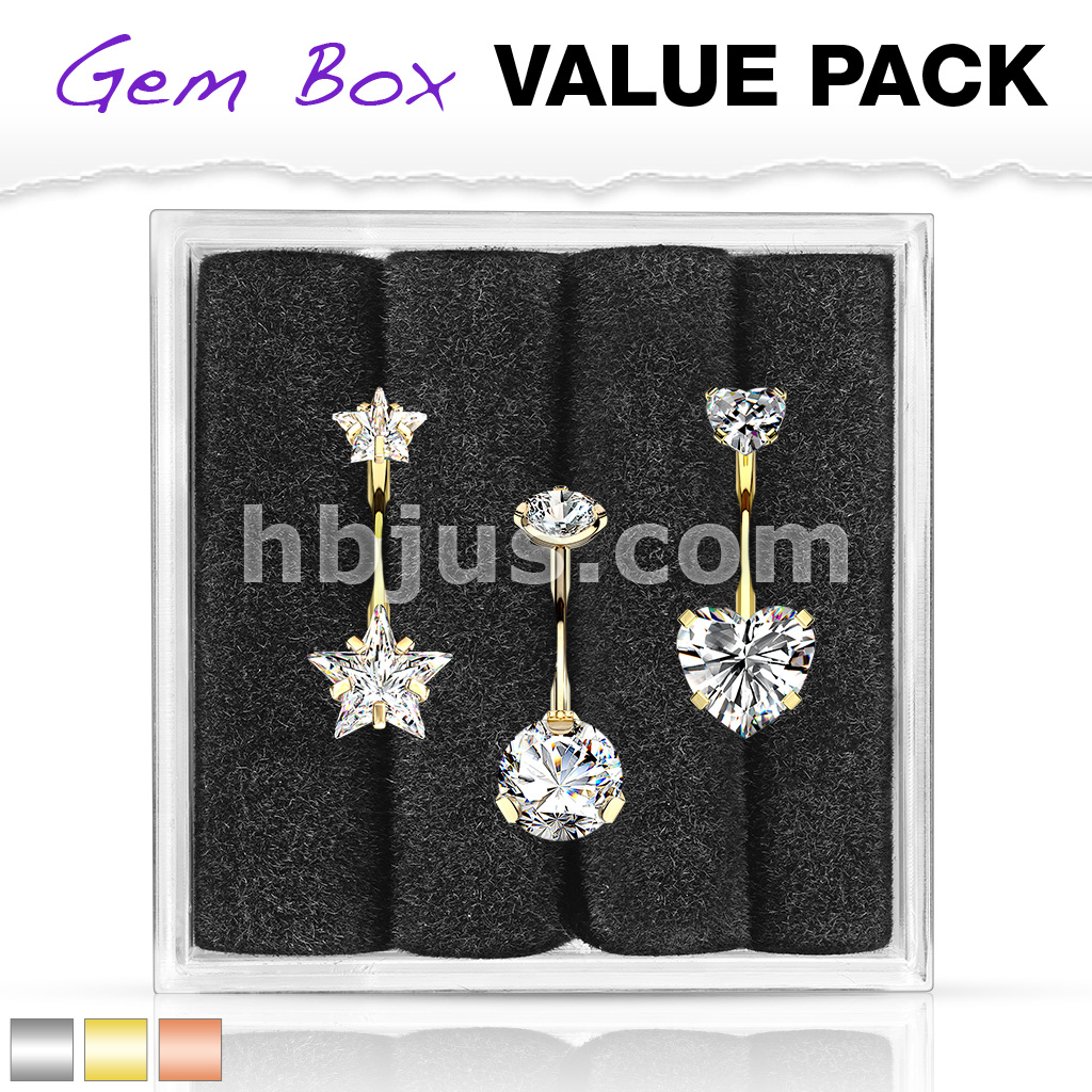 3 Pcs Pre Loaded Assorted 316L Surgical Steel Internal Thread Top Double Jeweled Belly Ring Gem Box Package