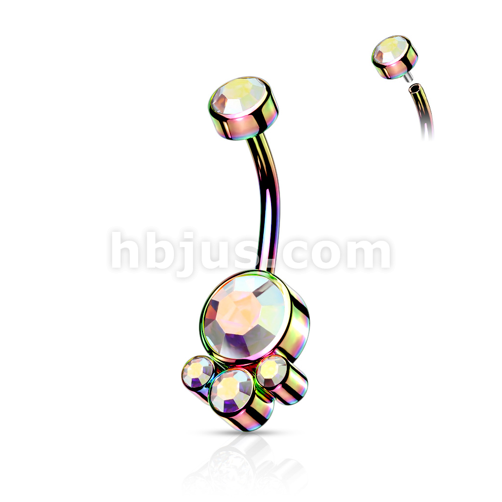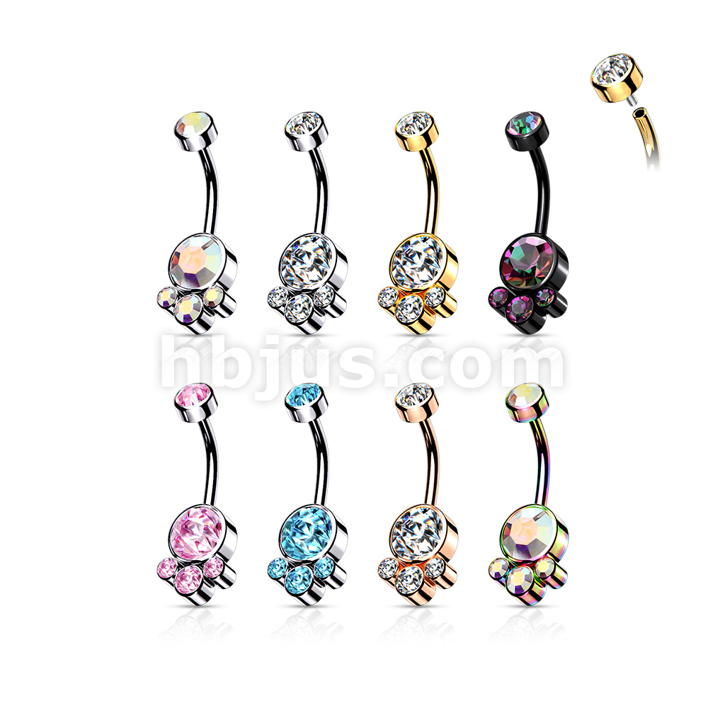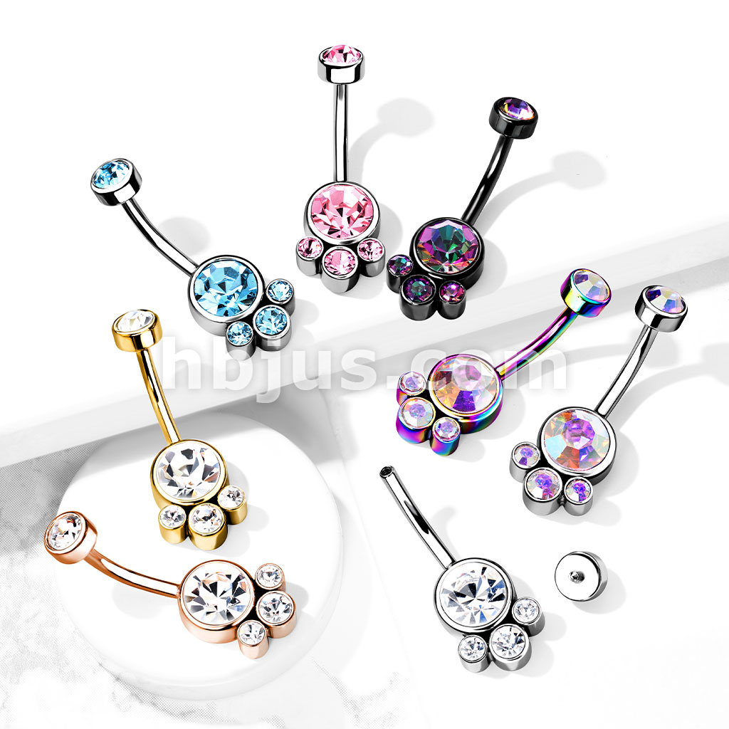 Round Cluster Crystal Stone Set with Internally Threaded Top 316L Surgical Steel Belly Rings