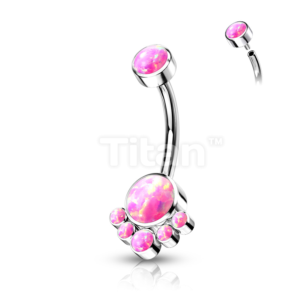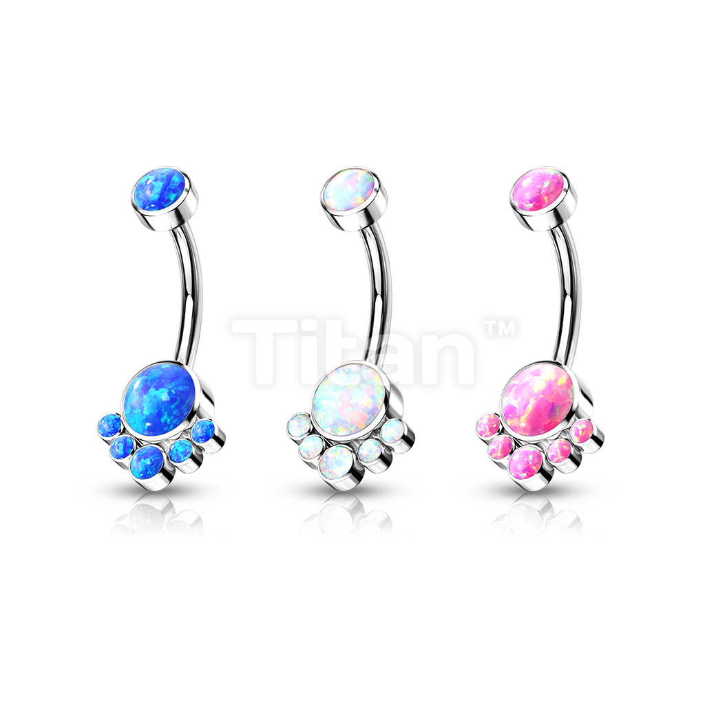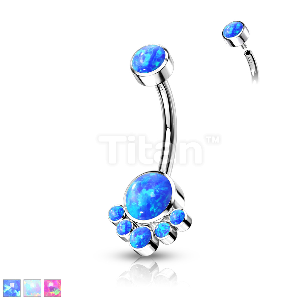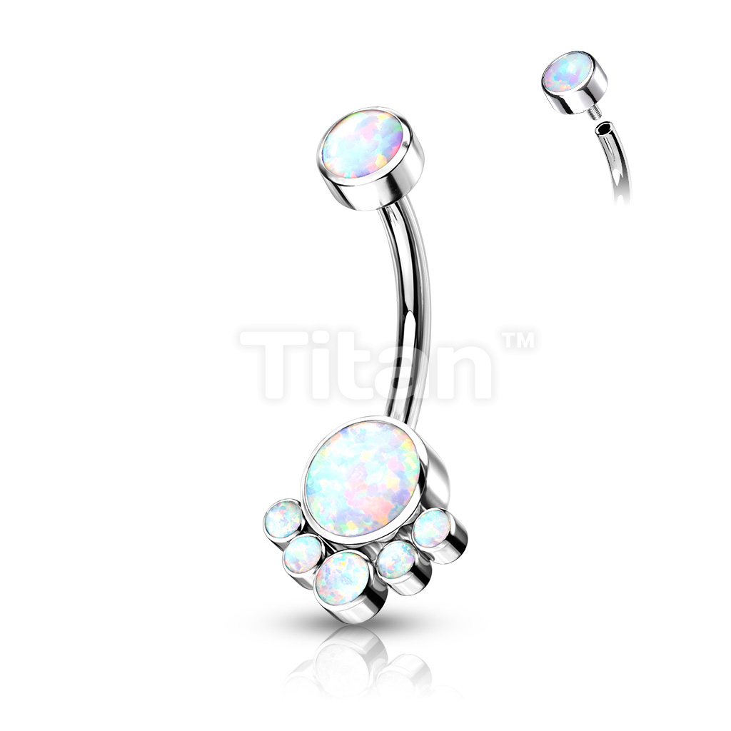 Implant Grade Titanium Internally Threaded Round Bezel Set Opal Cluster Belly Button Ring