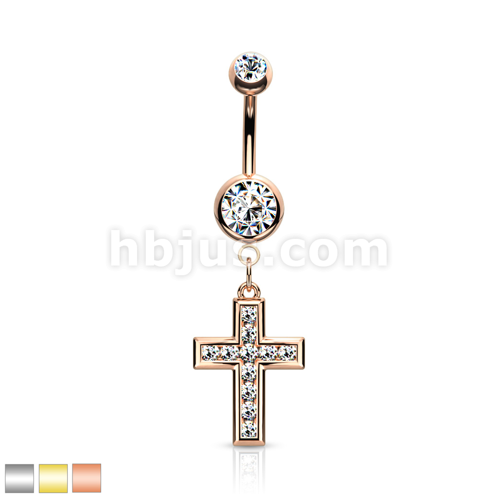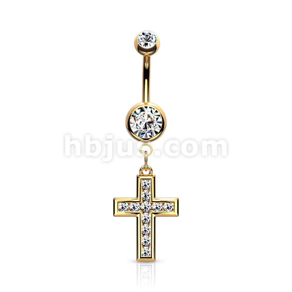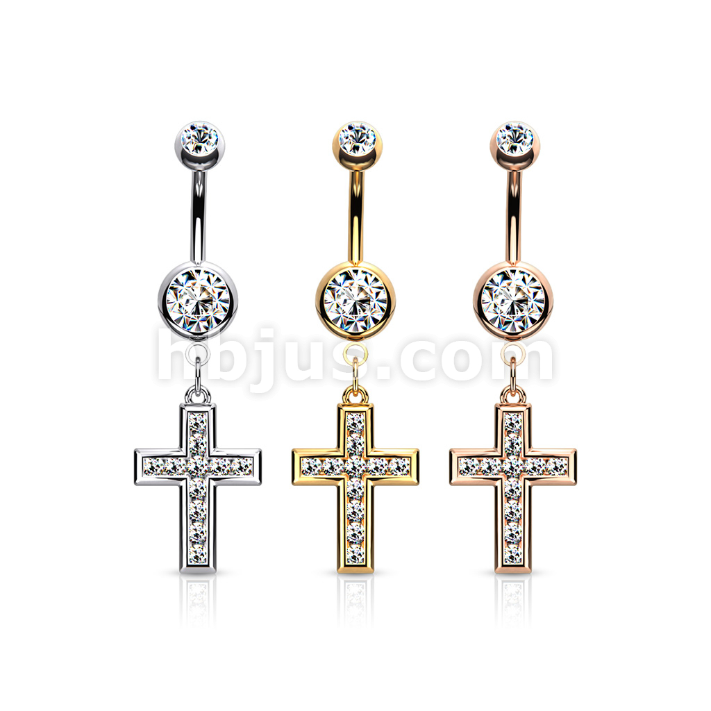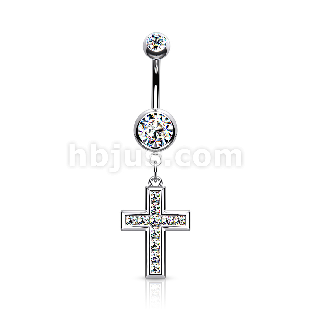 316L Surgical Steel CZ Set Cross Dangle Belly Button Ring