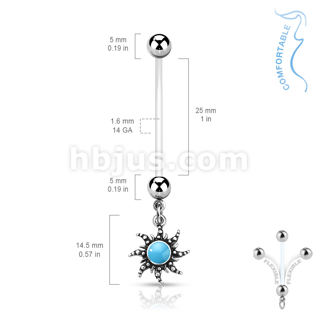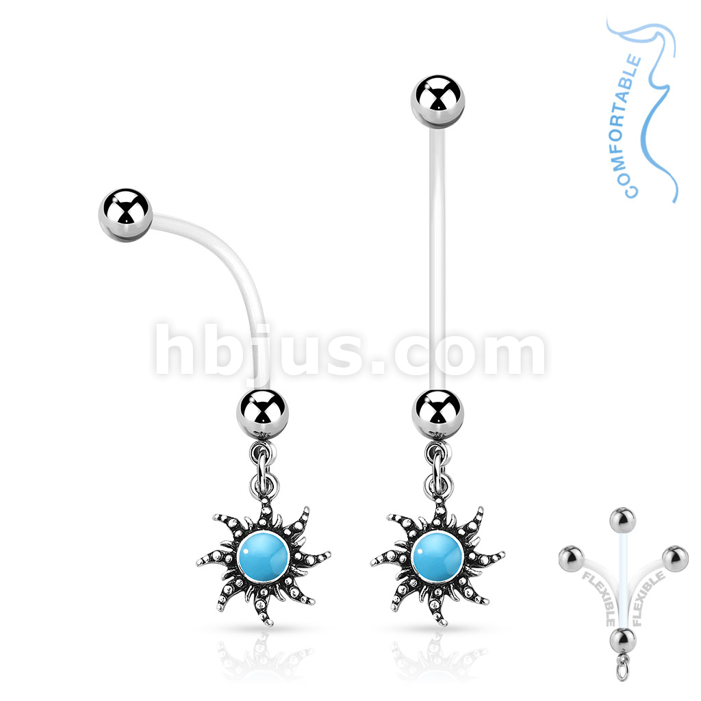 Turquoise Sun Pregnancy Belly Ring Bioflex with 316L Surgical Steel Balls