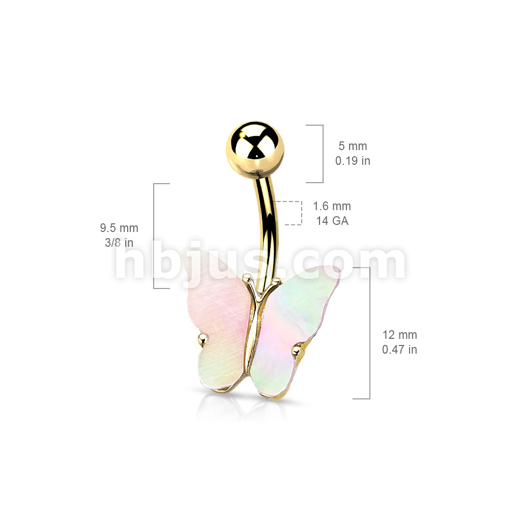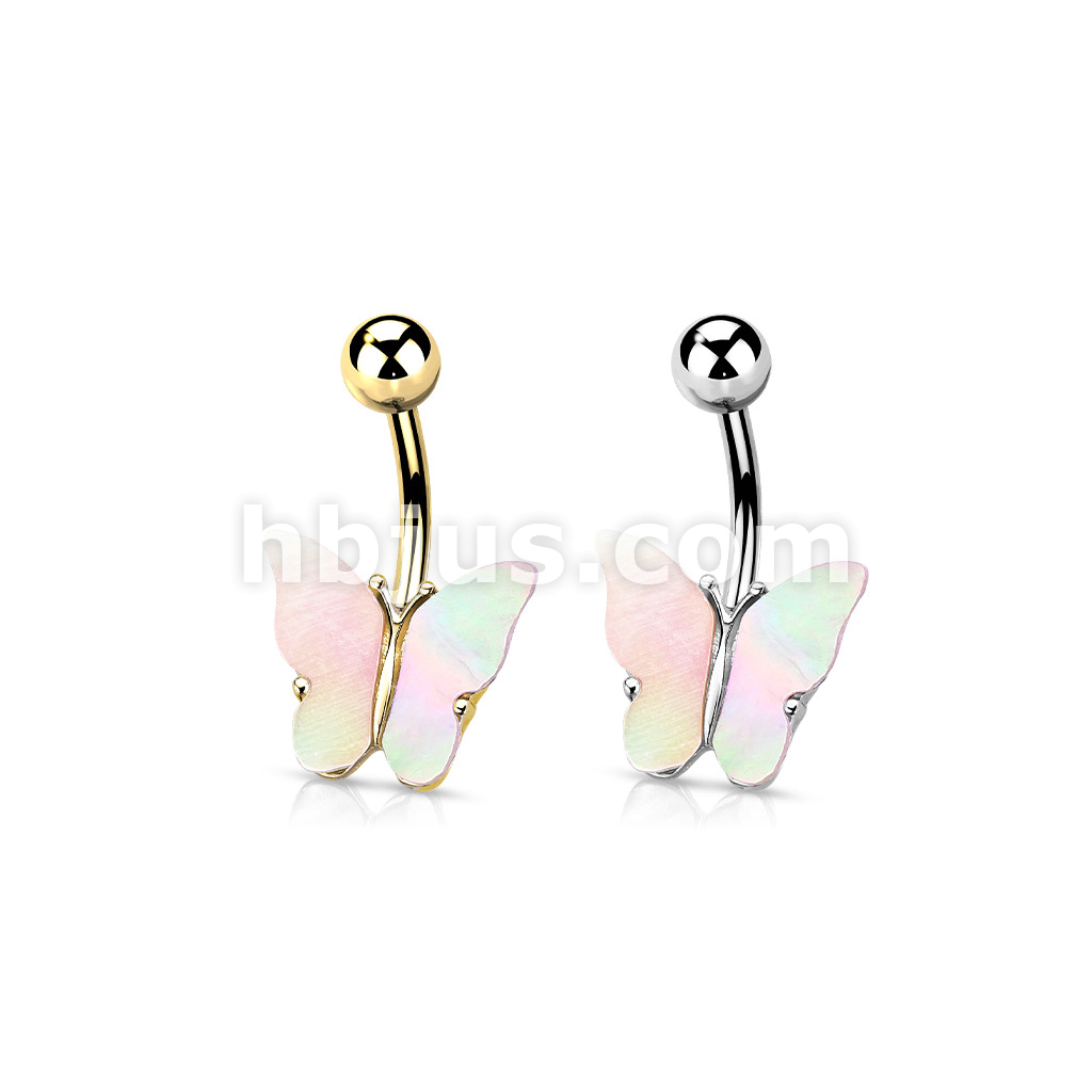 316L Surgical Steel Shell Covered Butterfly Belly Button Ring