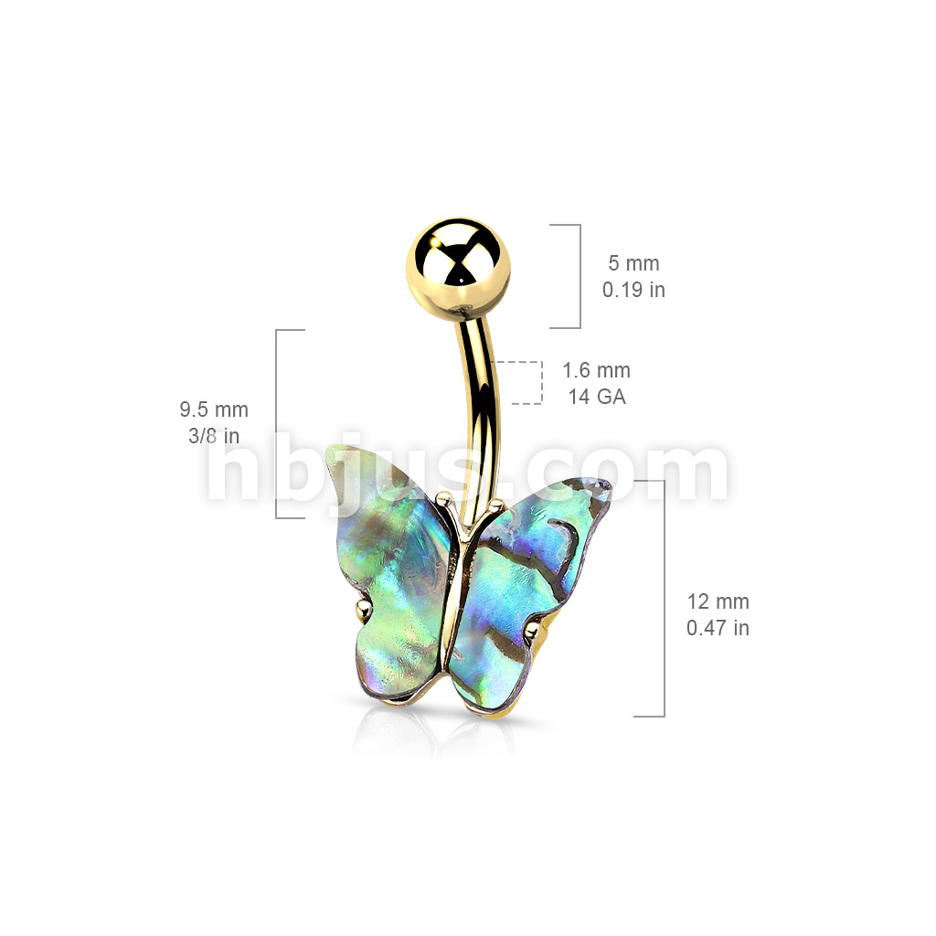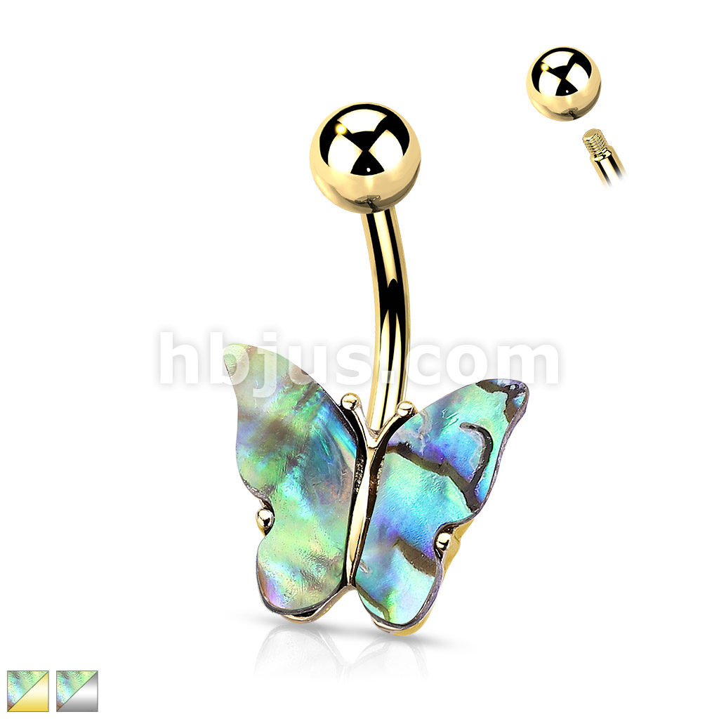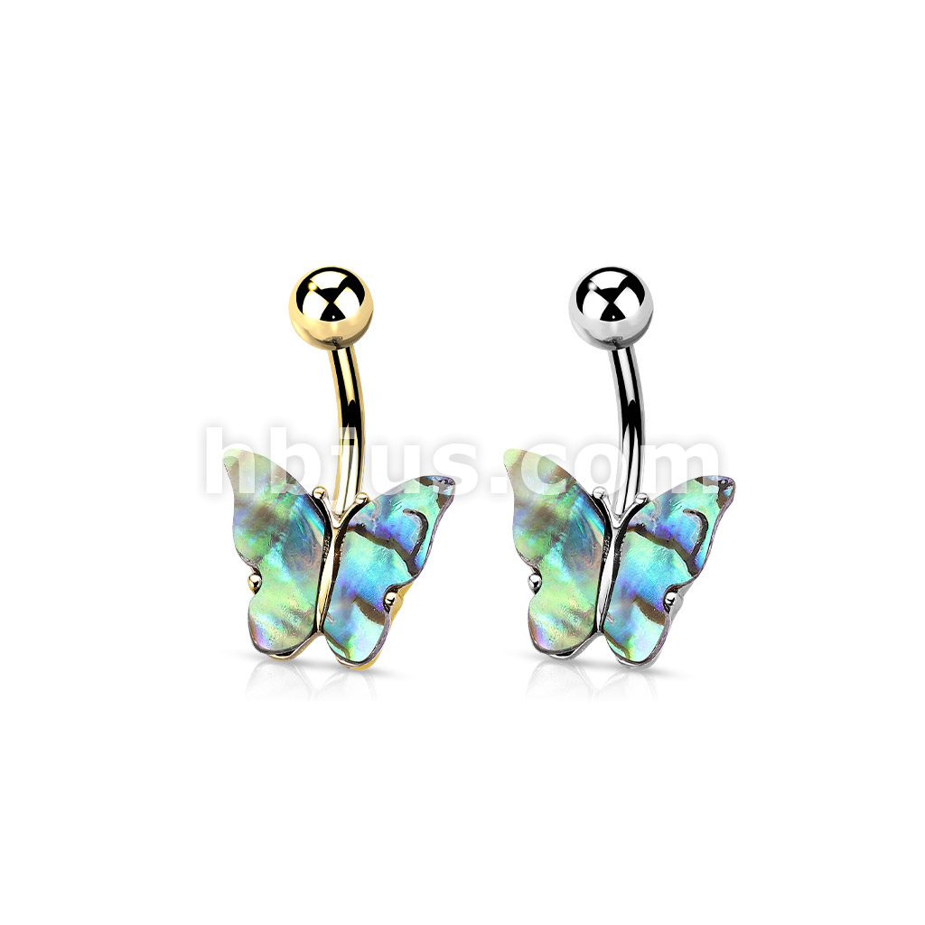 316L Surgical Steel Abalone Shell Covered Butterfly Belly Button Ring