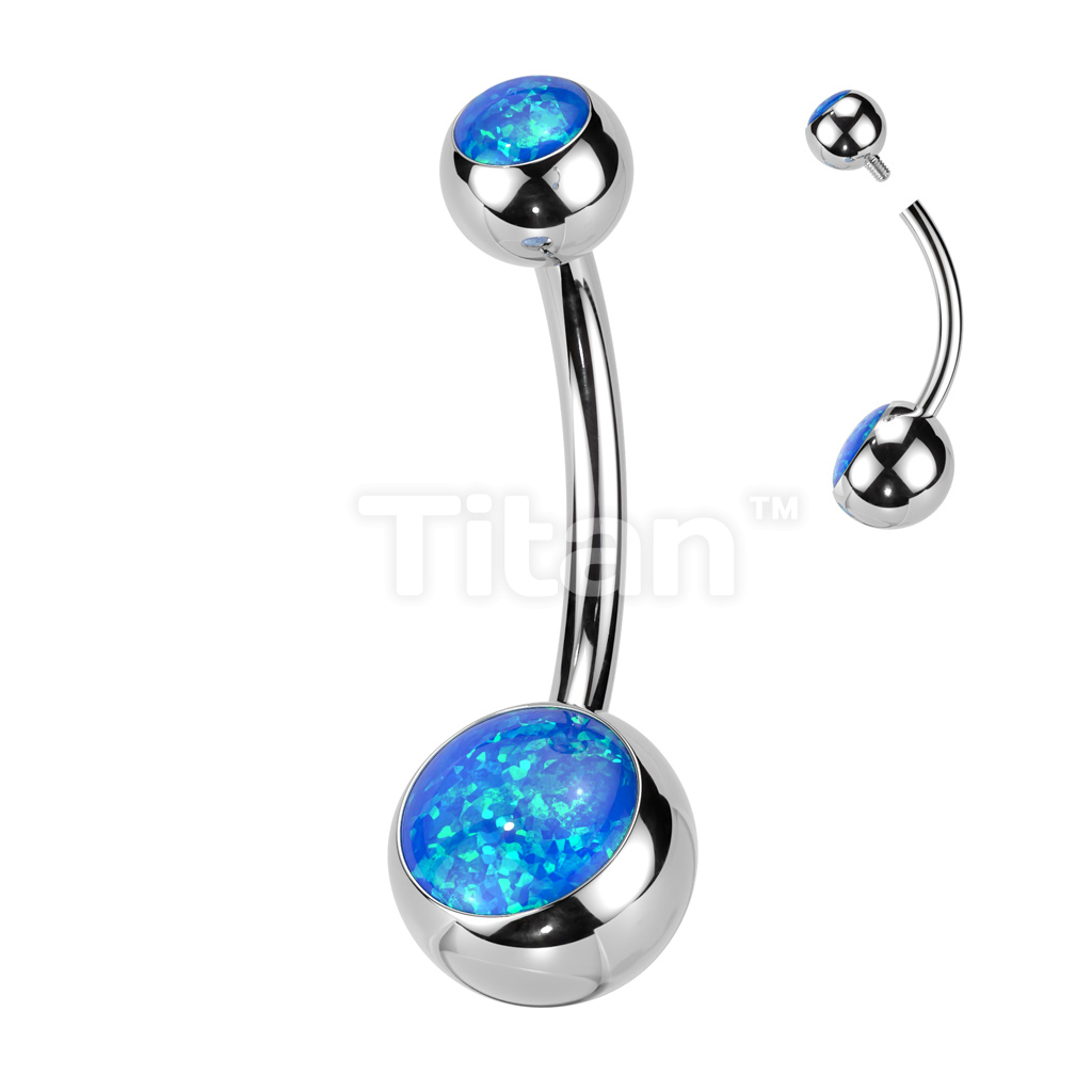 Implant Grade Titanium Internally Threaded Double Jeweled Opal Belly Button Ring